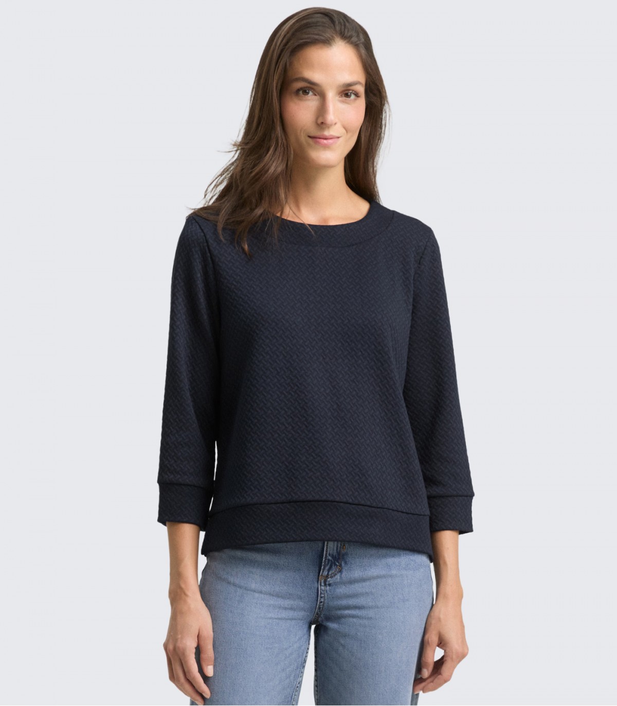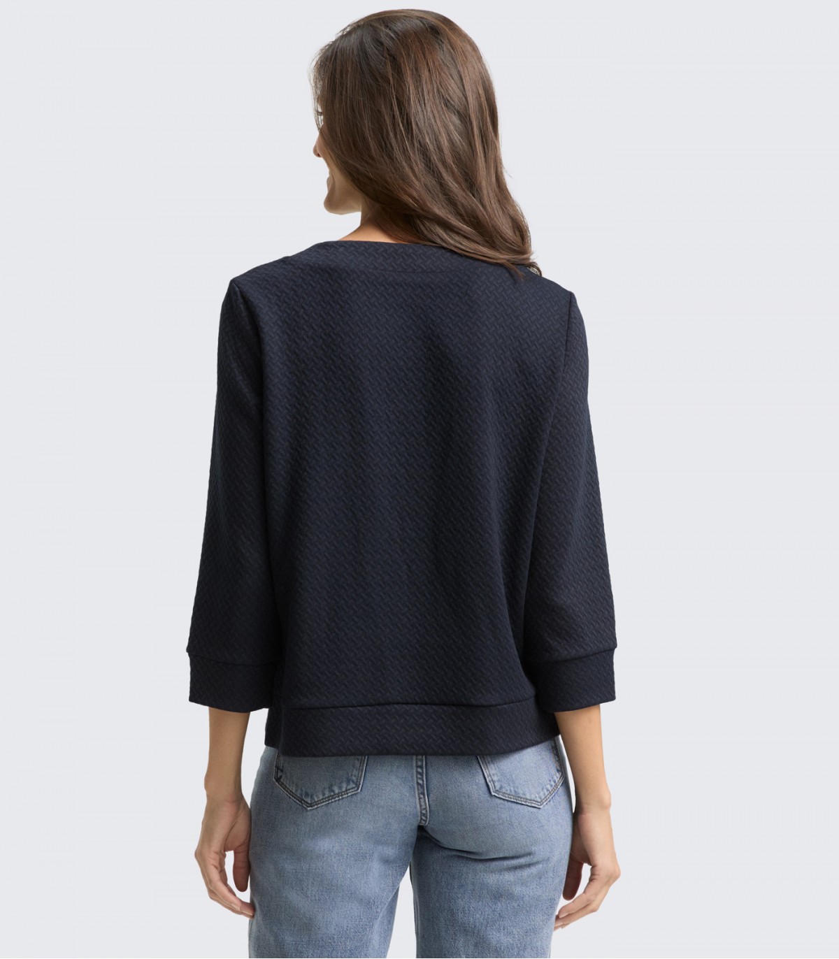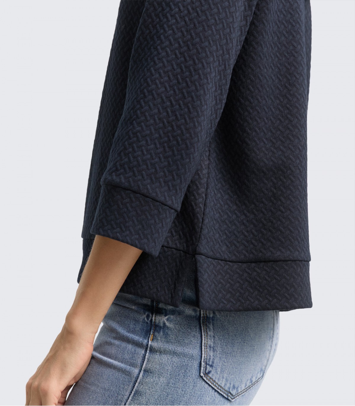 Mõnusast struktuurse pinnaga kangast lühendatud lõikega dressipluus, millel on 7/8 pikkused varrukad ja lõhik külgedel. Lõdvem Boxy Fit lõige tagab on mugav igapäevasel kandmisel.