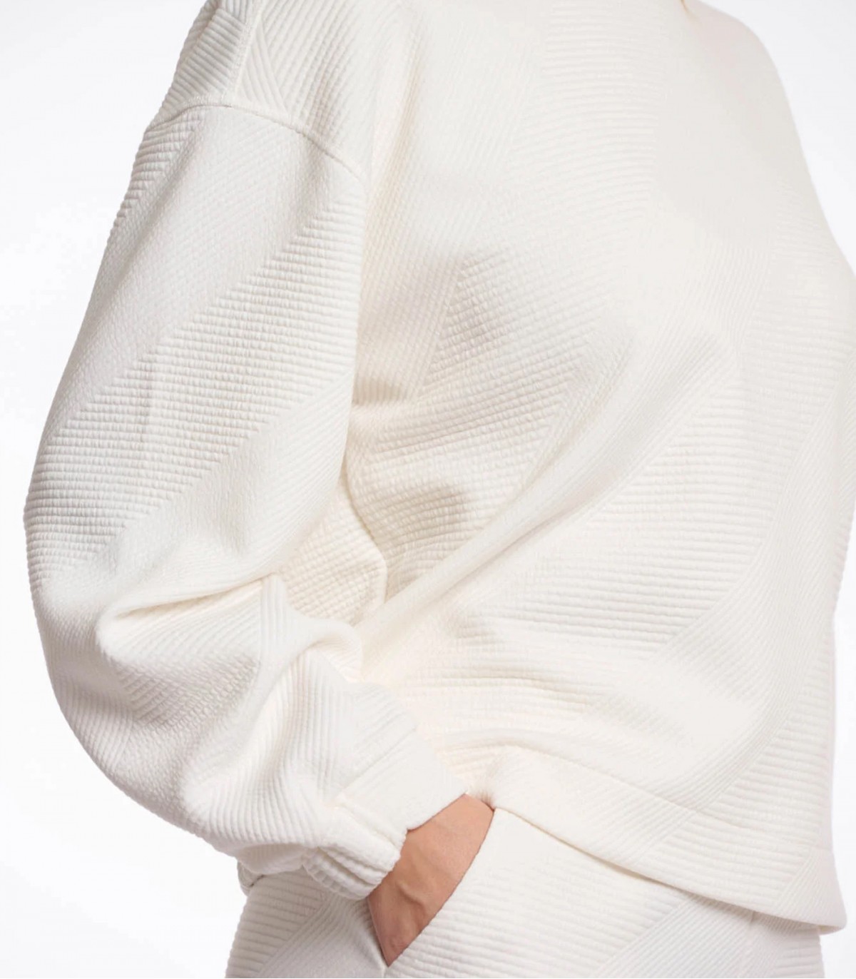 Pehme tekstuurse pinnaga dressipluus lõdvema lõike ja ajatu disainiga. Ümara kaelusega mudelil on pikad varrukad ning elastsed otsad. Sobita samast materjalist pükstega, et luua ühtne ja stiilne komplekt.