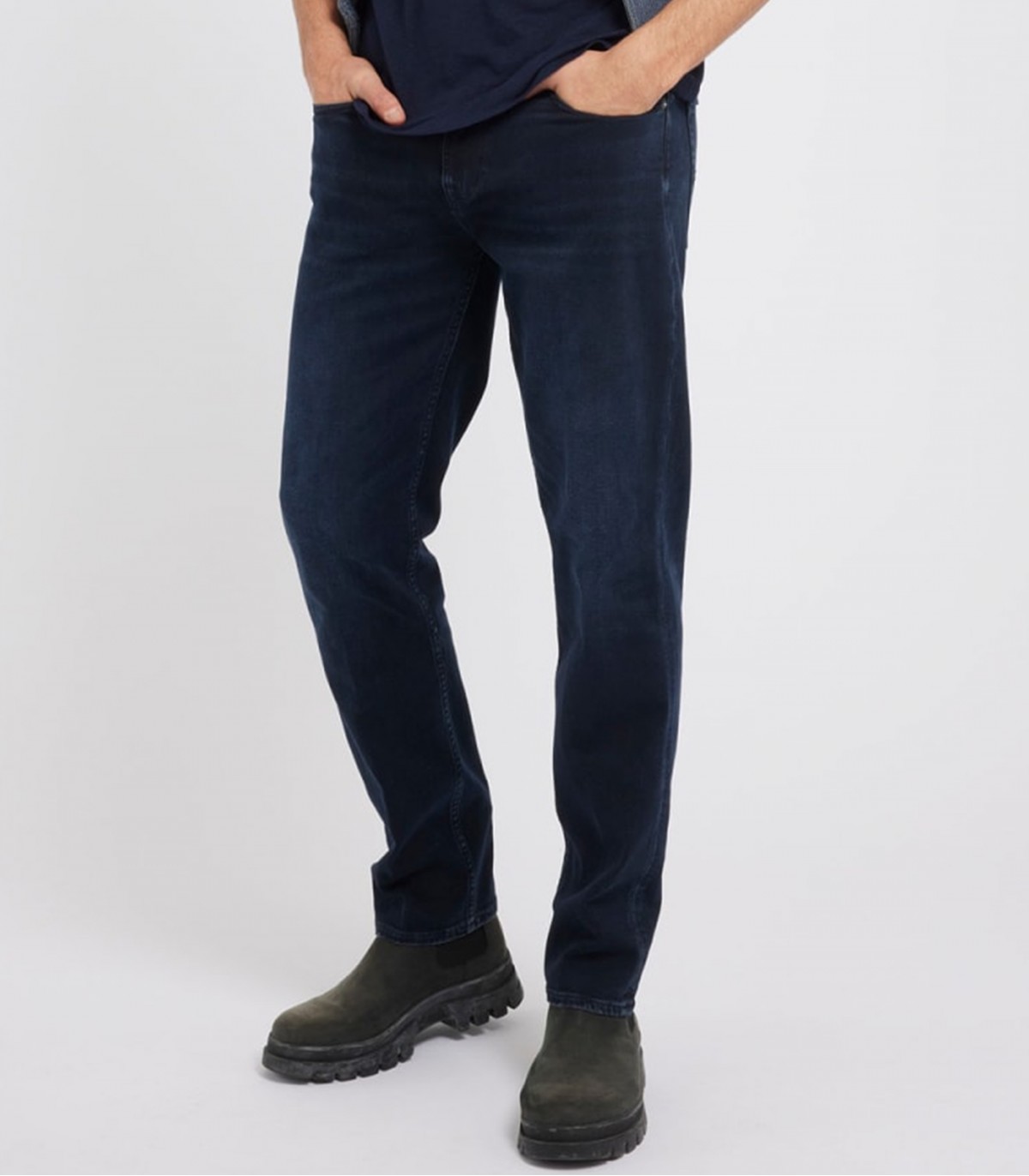 Tummansiniset Guess-miesten farkut klassisella leikkauksella sopivat täydellisesti arkikäyttöön. Ne sopivat hyvin sekä rentoon että tyylikkääseen arkityyliin.