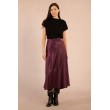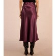 Elegantti pitkä satiinihame, jossa korkea vyötärö. Hieman levenevä leikkaus luo laskeutuvan siluetin. Sivussa piilovetoketju.