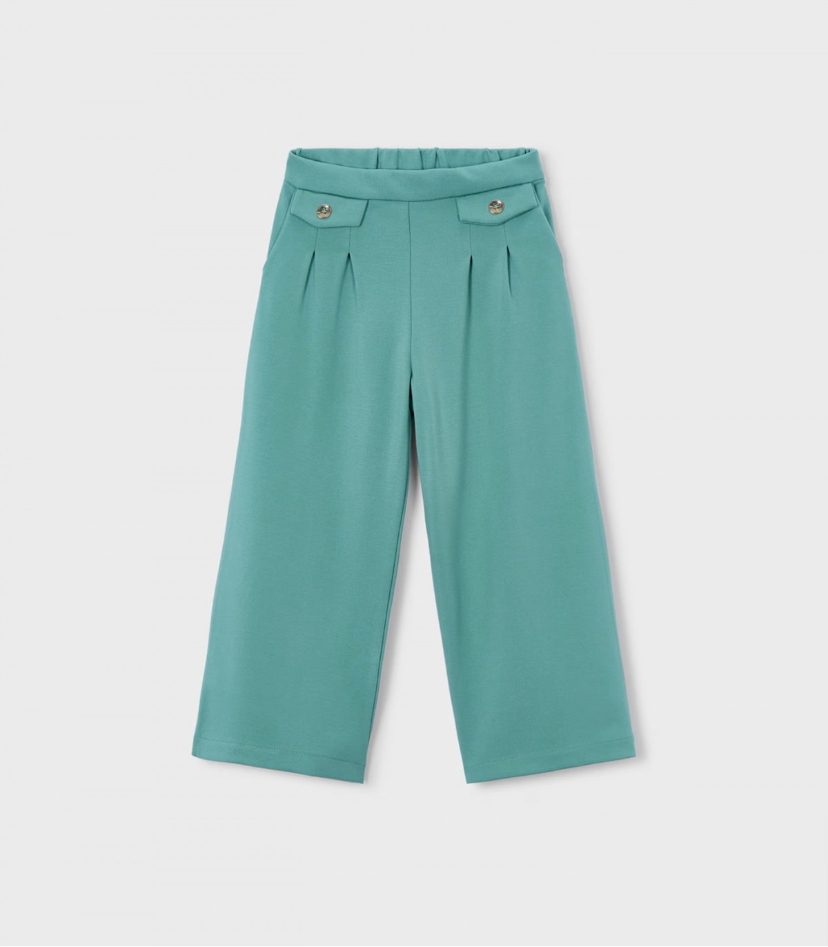 Trendikkäät leveälahkeiset housut tytöille sopivat täydellisesti niin arkeen kuin juhlavampiinkin tilaisuuksiin. Joustava vyötärönauha istuu mukavasti, ja edessä olevat laskokset ja koristeelliset napit lisäävät tyylikkään ilmeen.