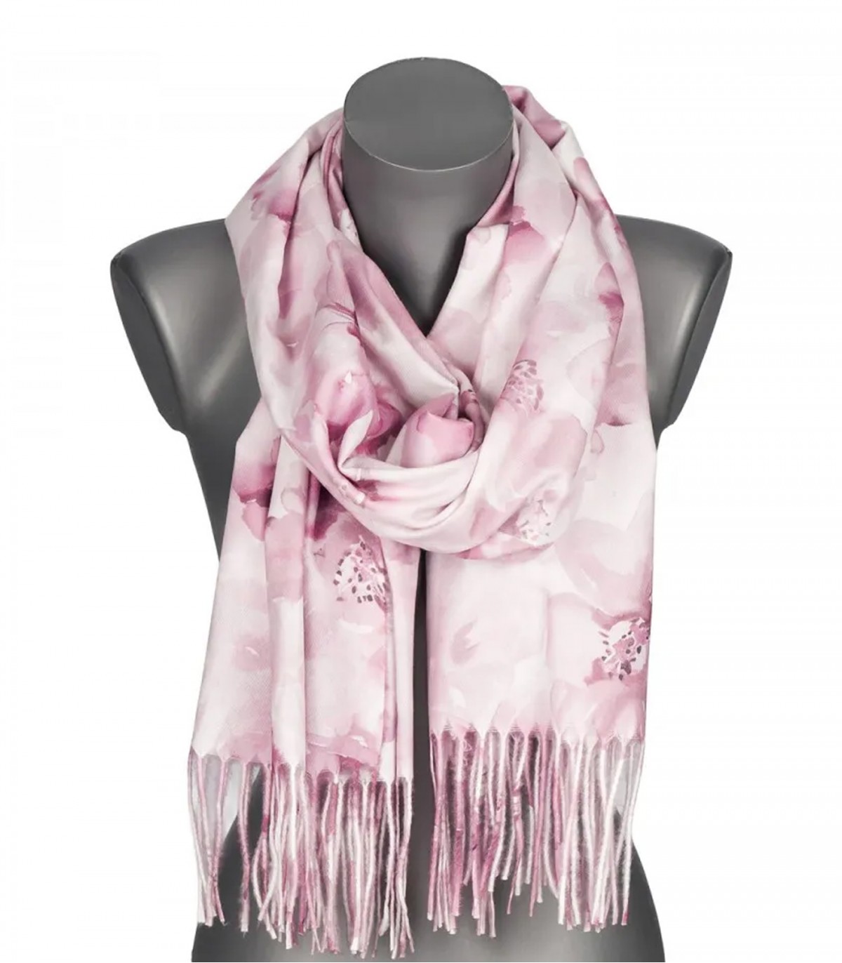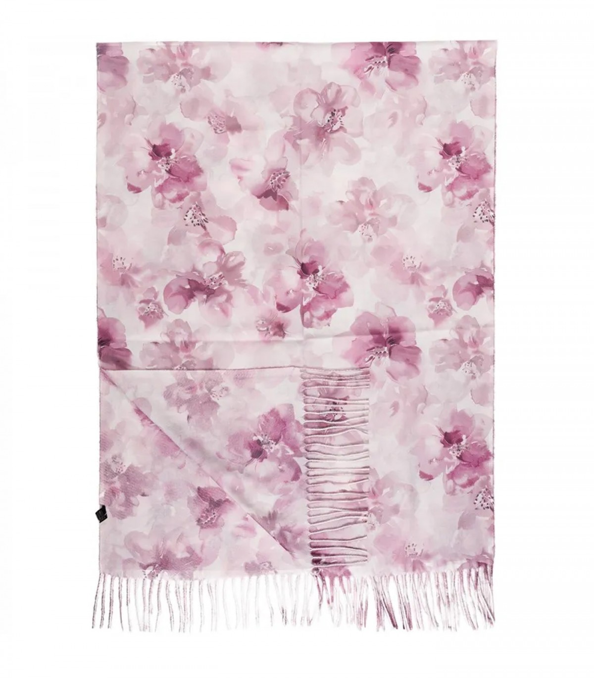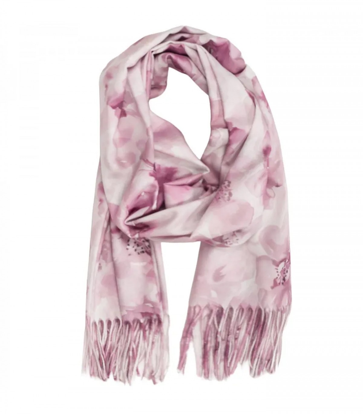 Tämä kevyt ja pehmeä huivi sopii täydellisesti sekä syksyyn että talveen. Herkät kukkakuviot tuovat ilmeeseen naisellista pehmeyttä ja raikkautta.