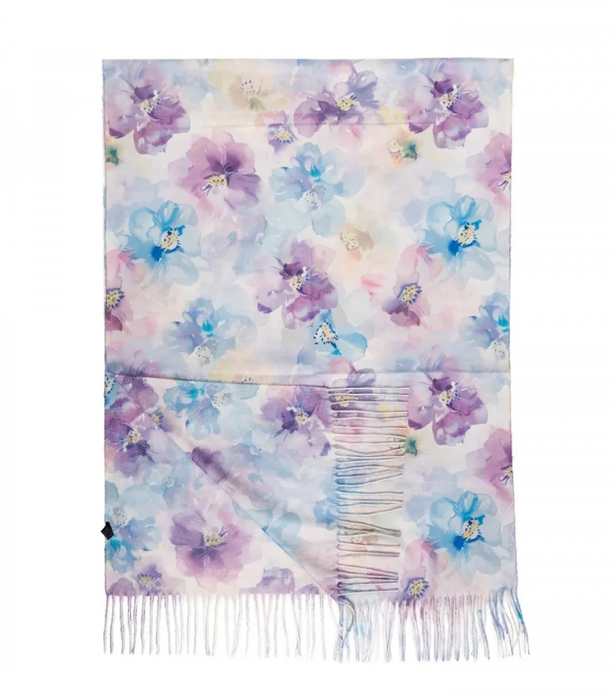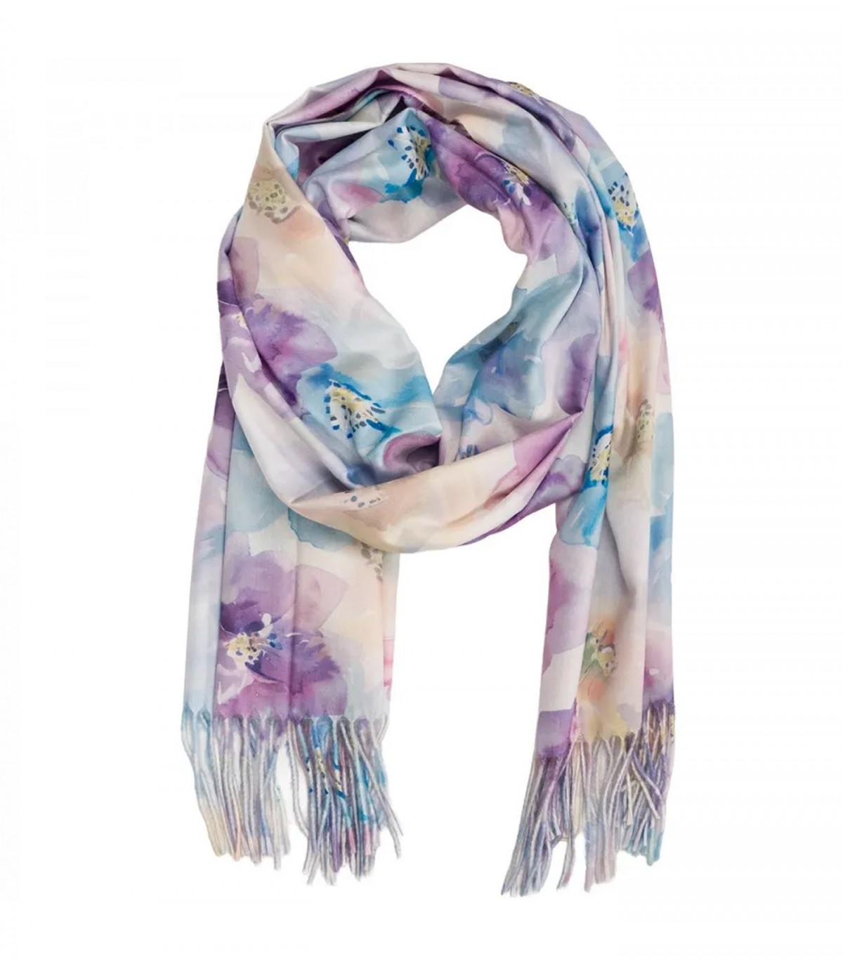 Tämä kevyt ja pehmeä huivi sopii täydellisesti sekä syksyyn että talveen. Herkät kukkakuviot tuovat ilmeeseen naisellista pehmeyttä ja raikkautta.