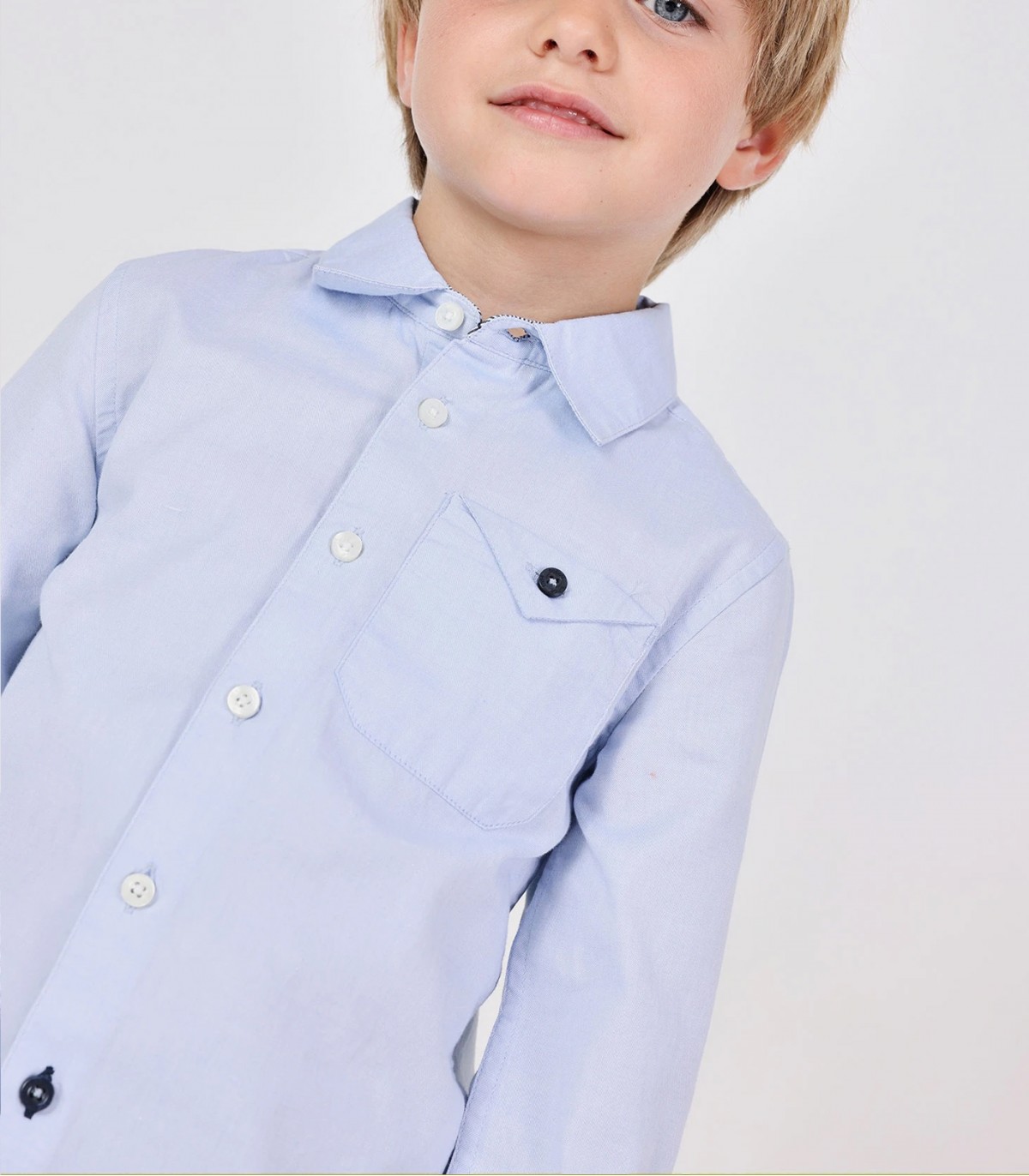 Klassinen vaaleansininen Boboli-poikien paita sopii sekä juhlatilaisuuksiin että arkeen. Pehmeä ja hengittävä puuvillakangas on mukava päällä koko päivän.