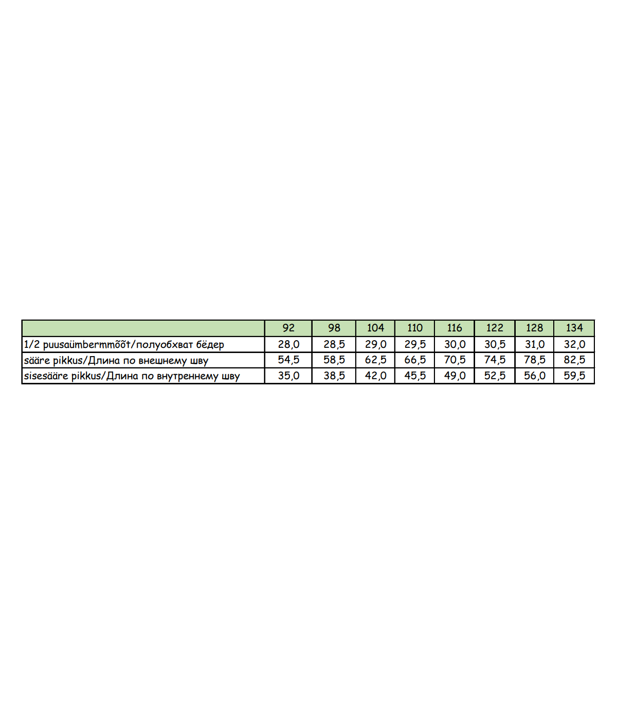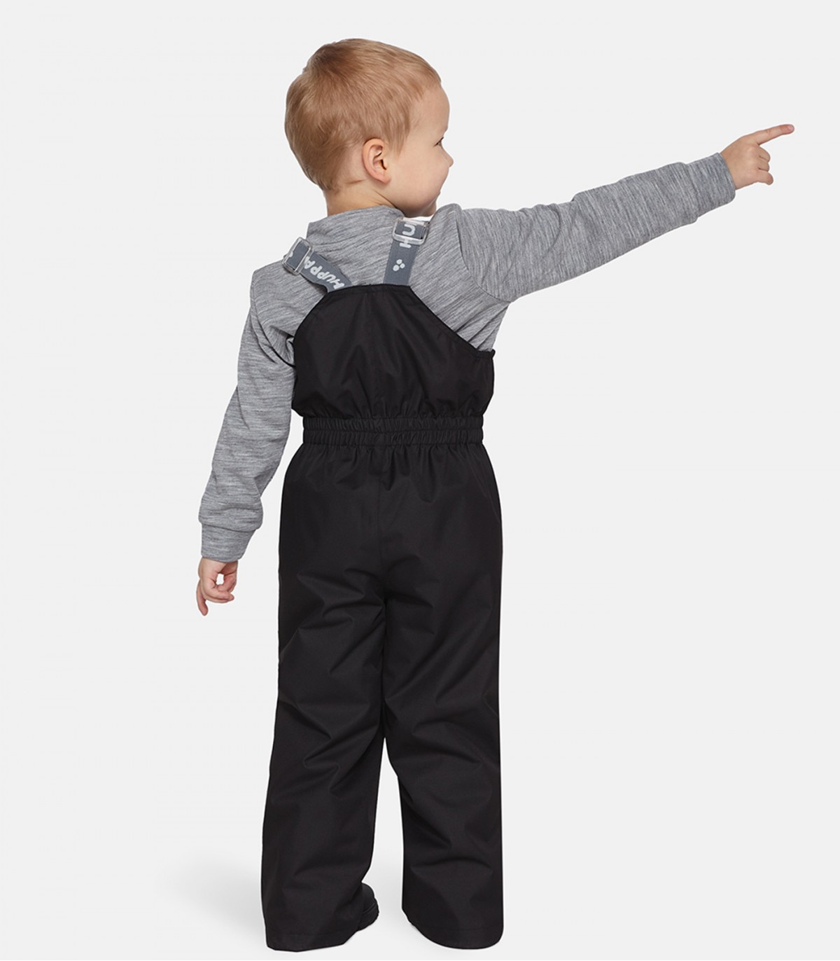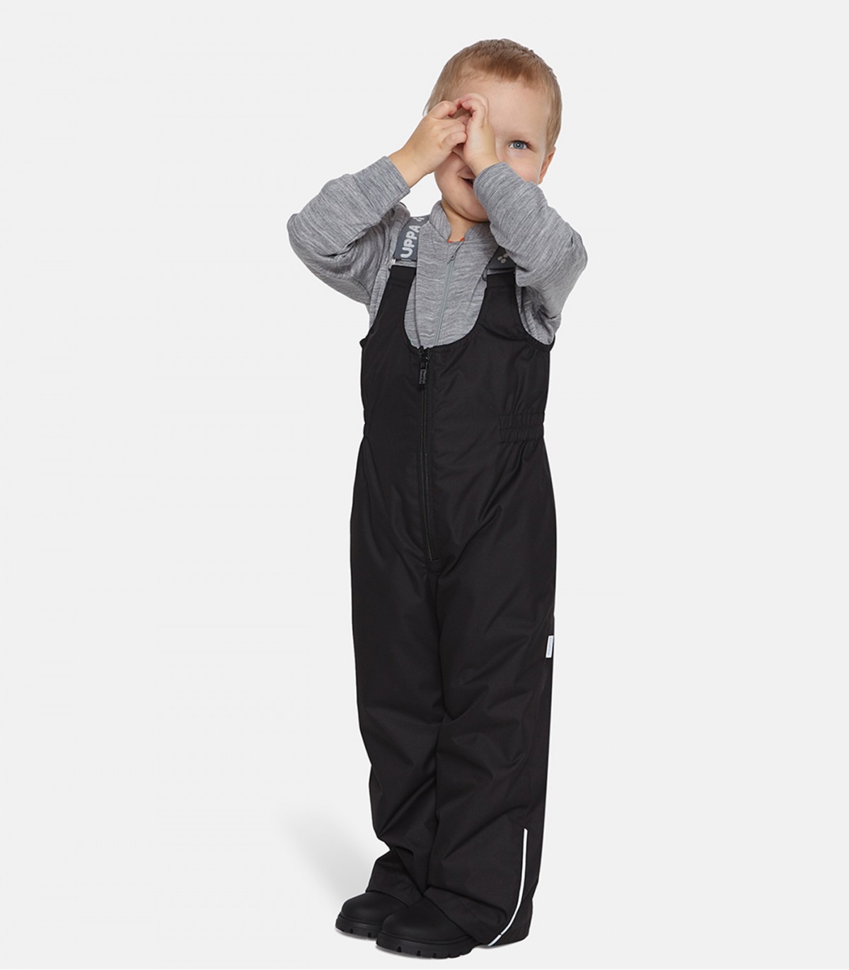 Lasten ulkoiluhousut kevyellä 40 g:n eristyksellä sopivat kevät- ja syyskäyttöön. Korkea vyötärö ja henkselit istuvat hyvin. Vedenpitävästi teipattu lahkeensauma ja säädettävät lahkeensuut.