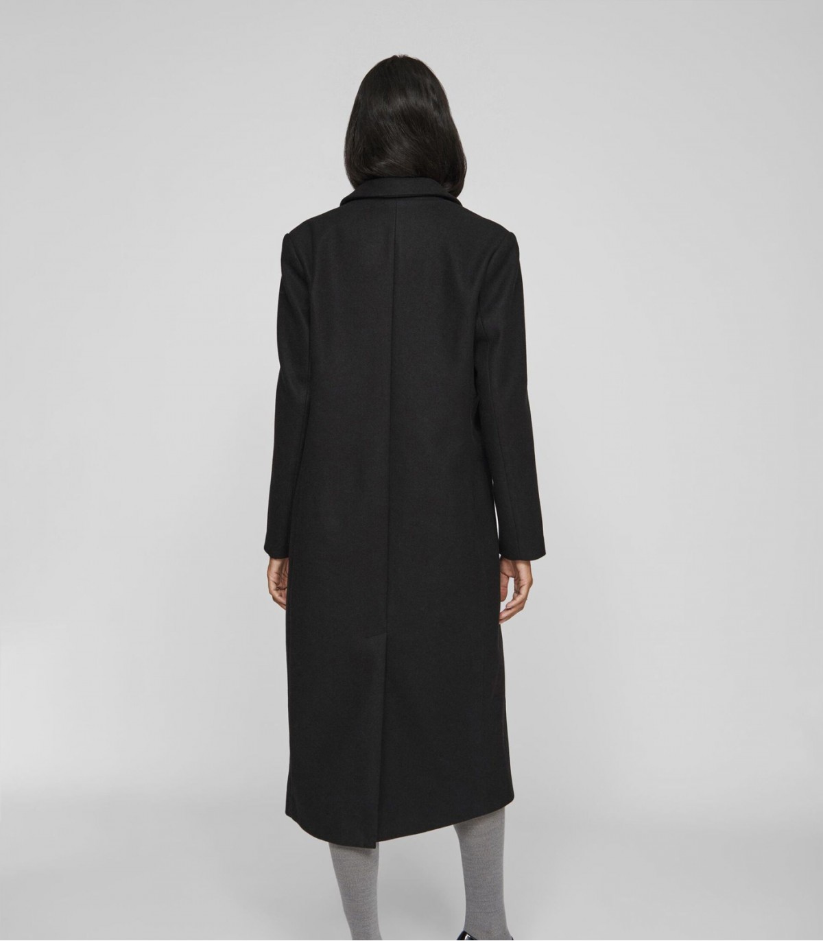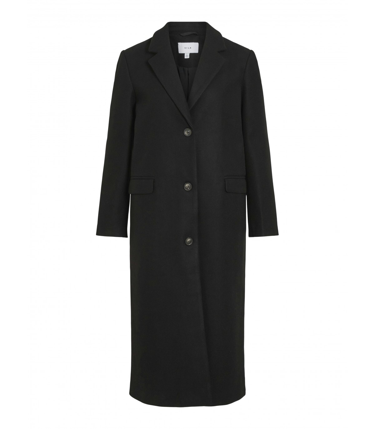 Ajaton pitkä musta takki täydentää minkä tahansa vaatekaapin. Klassisen leikkauksen ja minimalistisen muotoilun ansiosta takki sopii sekä arkeen että juhlatilaisuuksiin.