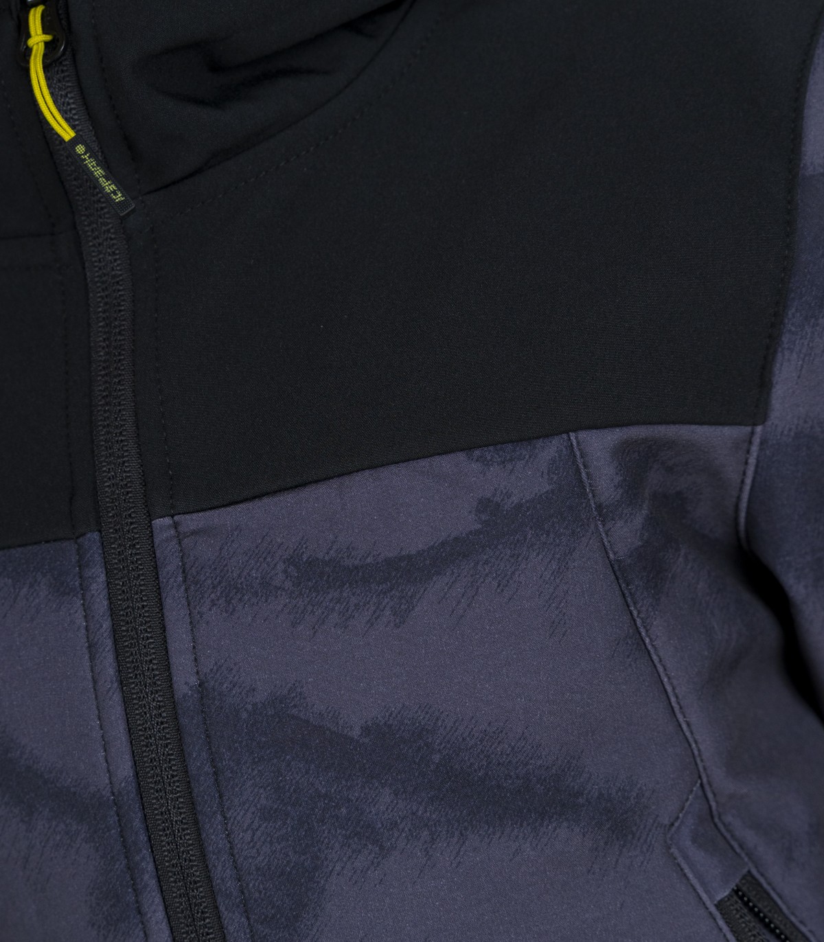 Vedenpitävä ja hieman joustava softshell-kangas (saumoja ei ole teipattu, joten takki ei ole täysin vedenpitävä).