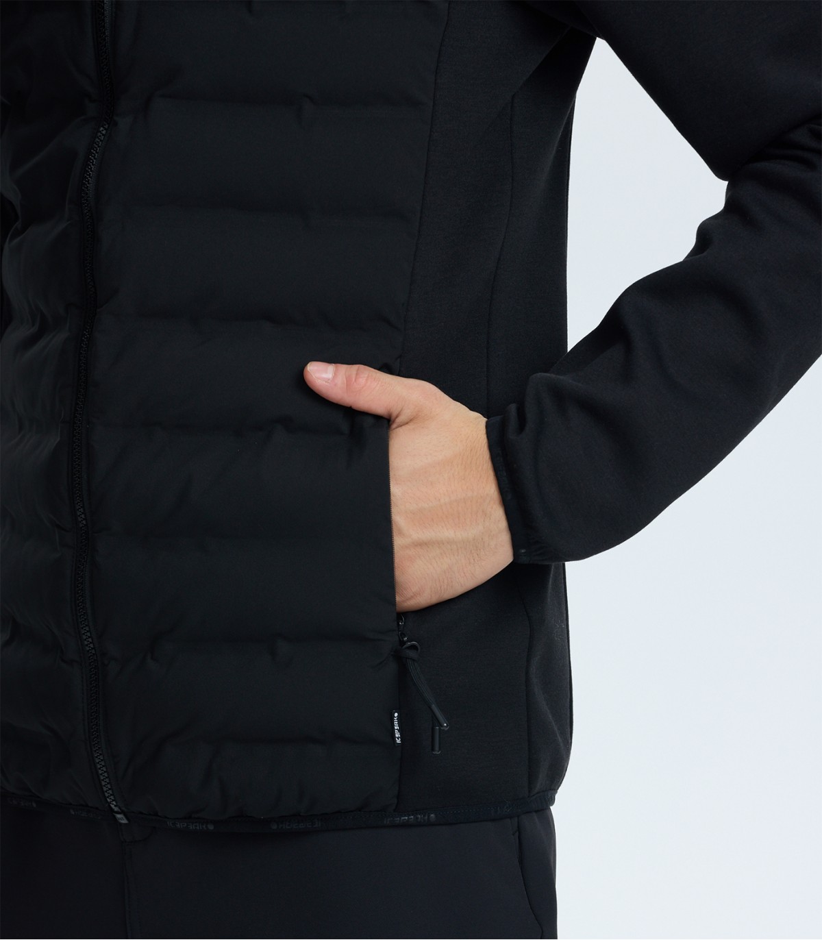 Monipuolinen miesten hybriditakki, joka sopii täydellisesti sekä aktiiviseen toimintaan että arkikäyttöön. Takin etuosa on tikattu lämpimällä täytteellä, ja sivut, hihat ja selkäosa on valmistettu joustavasta Thermostretch-kankaasta.