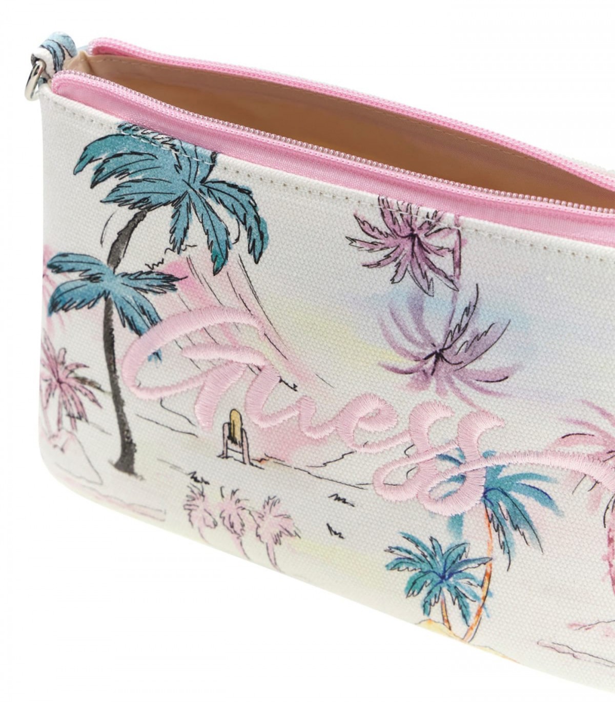 Tämä kesäinen ja leikkisä Guess-tyttöjen olkalaukku täydentää arkiasuasi värikkäällä kuviolla. Palmu- ja ranta-aiheinen design luo iloisen ilmeen ja sopii täydellisesti mukaan otettavaksi niin matkalle kuin kaupunkiinkin.