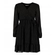 Elegantti Hailys-naisten mekko. Mekossa on v-pääntie ja vyötäröä korostava kuminauhavyötärö. Pitkissä hihoissa on kuminauhapäät ja helmassa röyhelö.