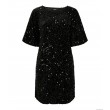 Tämä kiiltävillä paljeteilla koristeltu mekko tuo juhlavan säväyksen mihin tahansa tilaisuuteen. Leikkaukseltaan suora ja mukava, joten se sopii niin illanviettoon kuin muodolliseen tilaisuuteenkin.