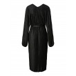 Tyylikkäästi laskeutuva musta laskostettu mekko sopii niin illanviettoon kuin juhlatilaisuuksiinkin.