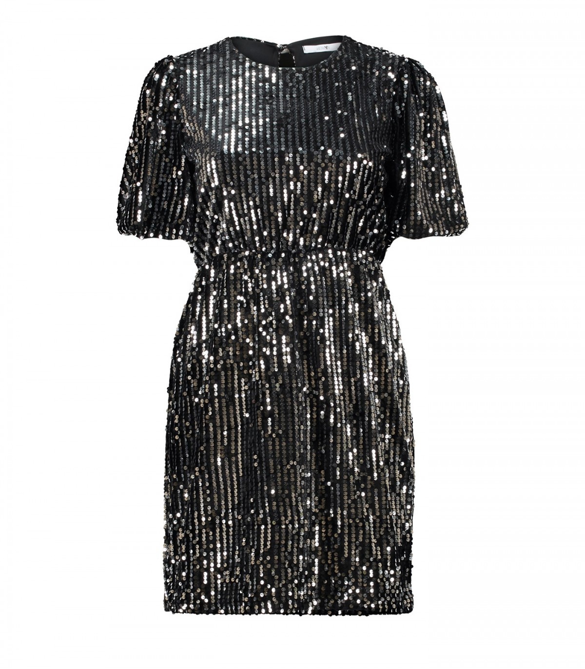 Kiiltävä lyhythihainen mekko, jonka pinta on päällystetty pienillä paljeteilla. Mekossa on pyöreä pääntie ja kuminauha vyötäröllä, joka korostaa naisellista siluettia. Täydellinen juhlaviin tilaisuuksiin ja illanistujaisiin.