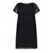 Yksinkertainen ja elegantti musta mekko, joka sopii täydellisesti sekä töihin että juhlatilaisuuksiin. Kevyt sifonkipäällyskerros laskeutuu kauniisti.