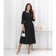 Mekko on midipituinen ja hieman levenevä, mikä istuu mukavasti. Samasta kankaasta valmistettu vyö vyötäröllä korostaa vyötärölinjaa ja antaa sinun säätää mekon siluettia haluamallasi tavalla.