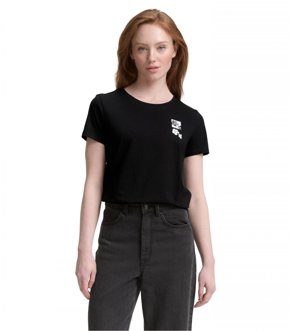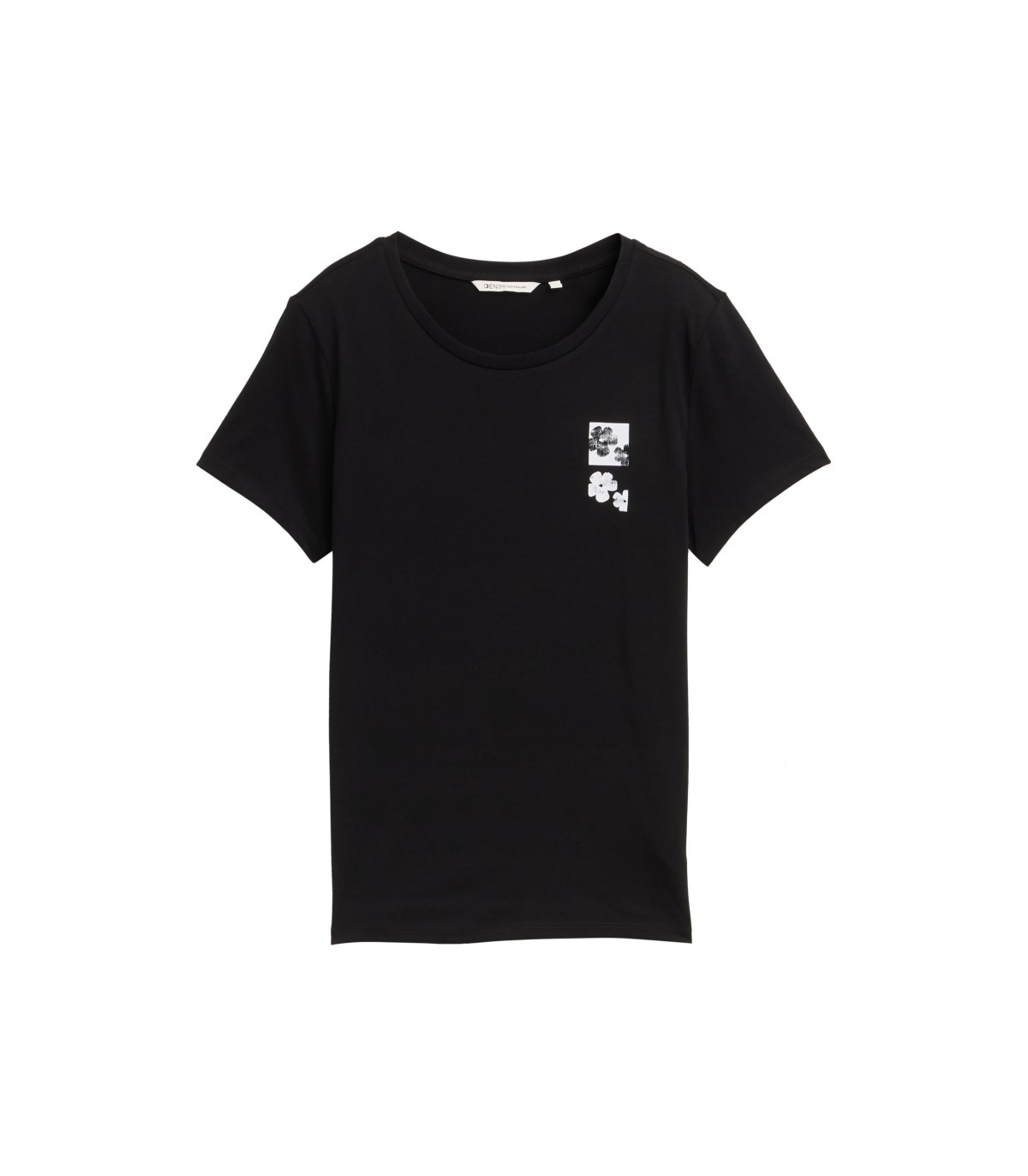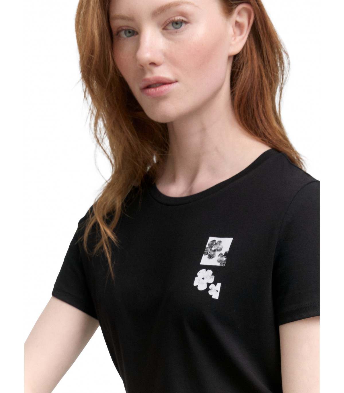 Lyhythihainen t-paita pehmeästä puuvillakankaasta, jossa on kukkakuvio.