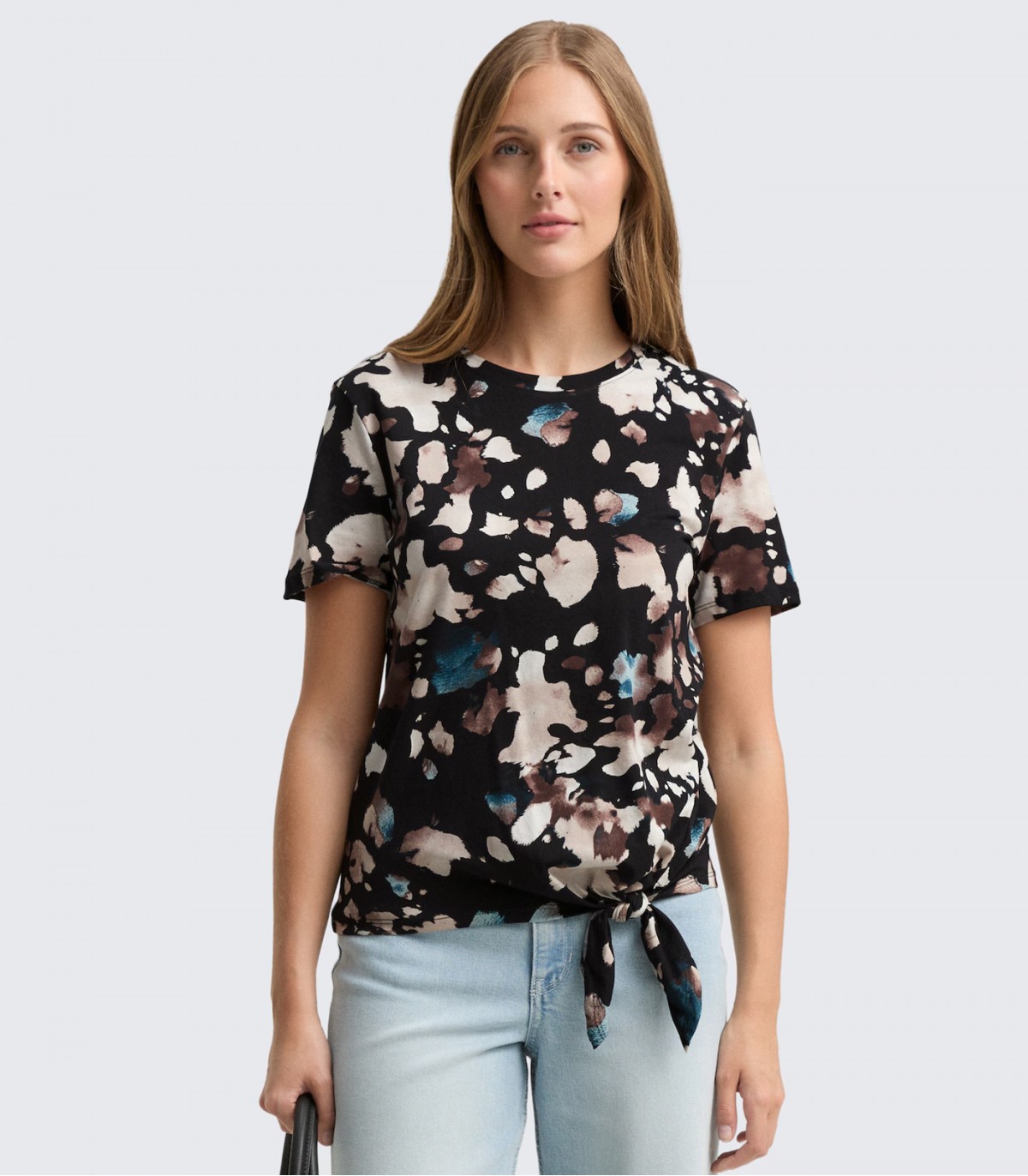Tyylikäs ja mukava Tom Tailor -t-paita jokapäiväiseen käyttöön. Hengittävä ja pehmeä luomupuuvilla on mukava päällä. T-paidassa on pyöreä pääntie, lyhyet hihat ja solmu helmassa. Painettu kangas luo ainutlaatuisen ja näyttävän ilmeen. Leikkaus on mukava ja sopii täydellisesti jokapäiväiseen käyttöön.