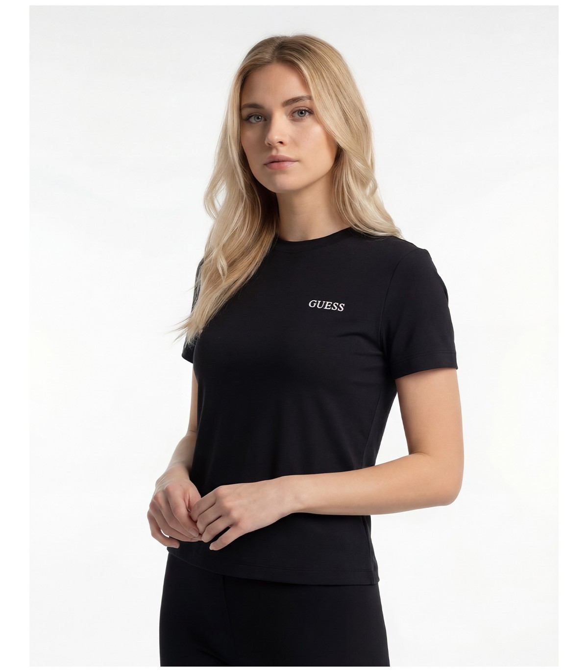 Yksinkertainen ja ajattoman tyylikäs musta t-paita, jossa on pieni Guess-logo rinnassa. Mukava jerseykangas istuu hyvin ja sopii täydellisesti jokapäiväiseen käyttöön.