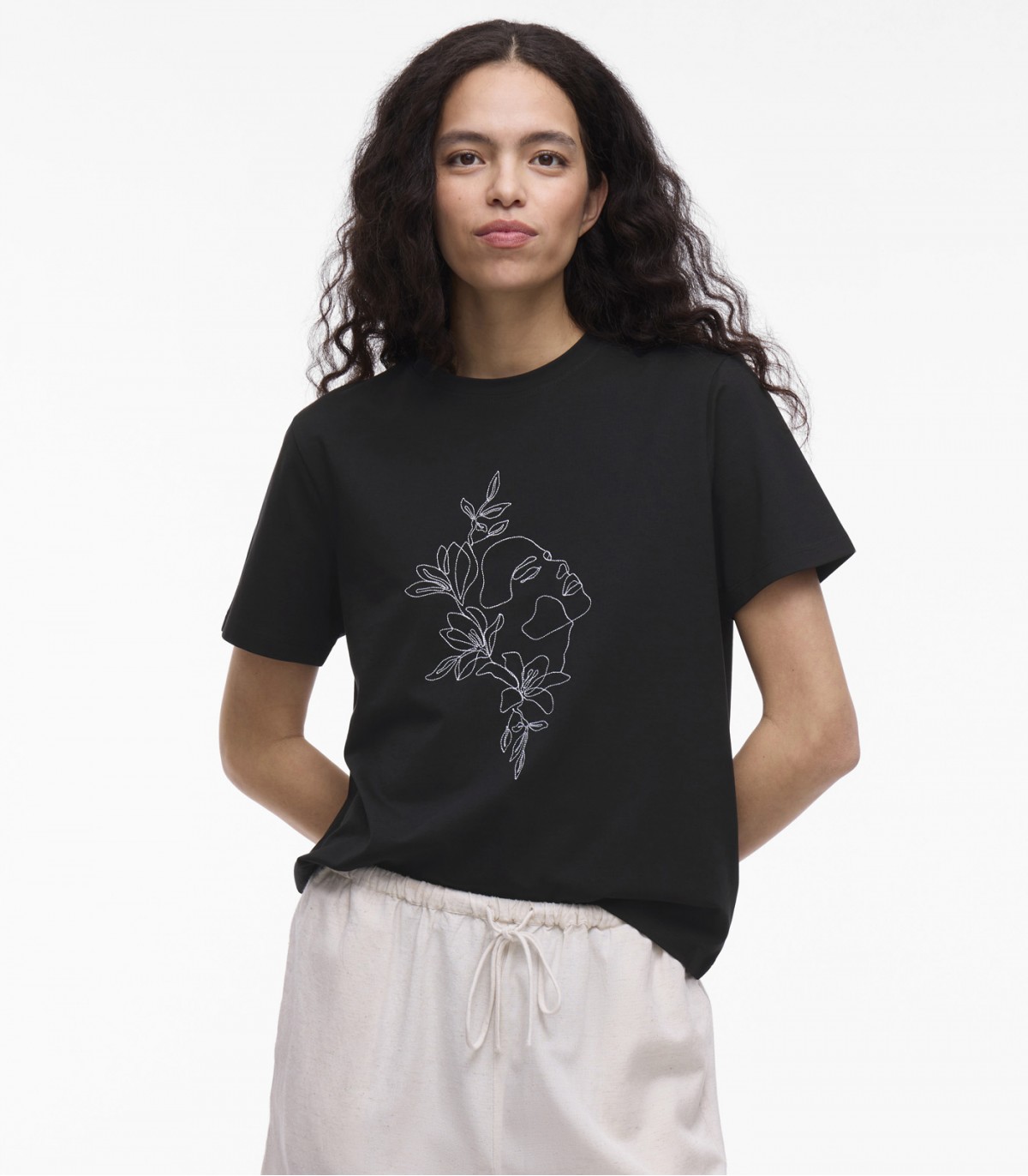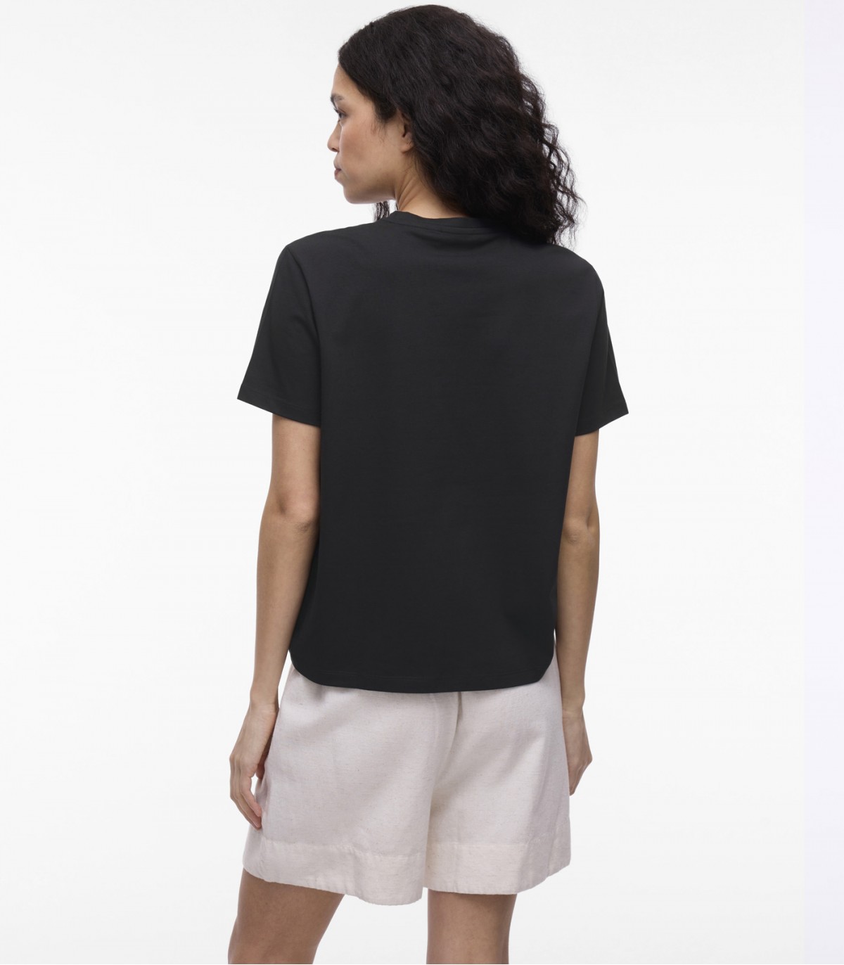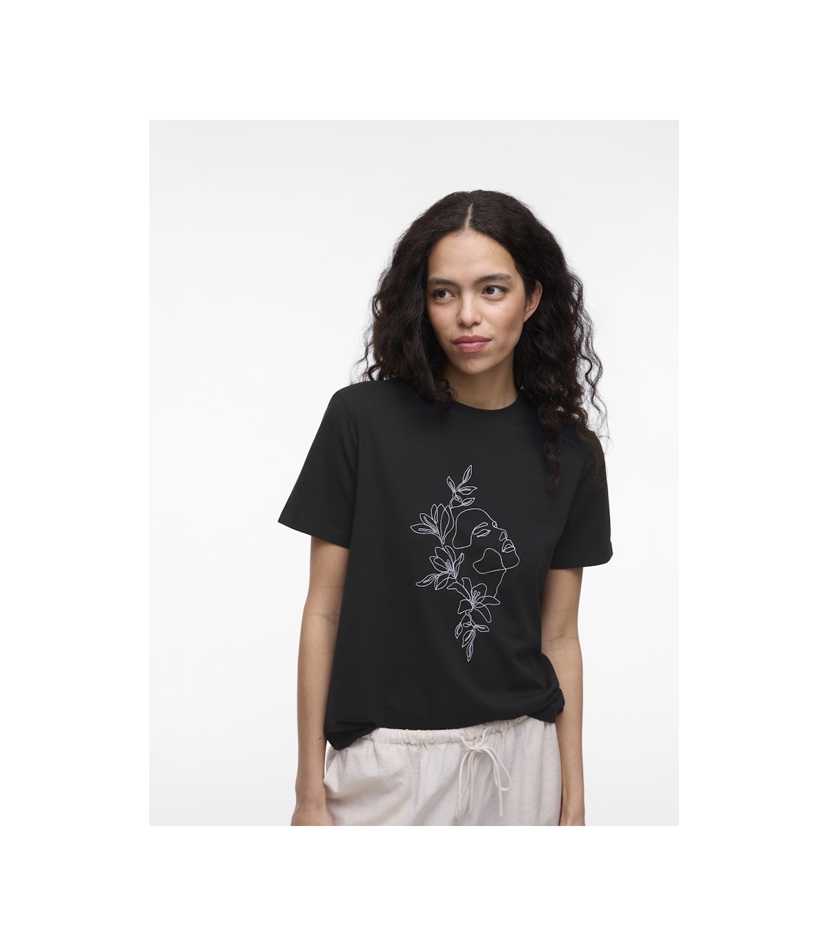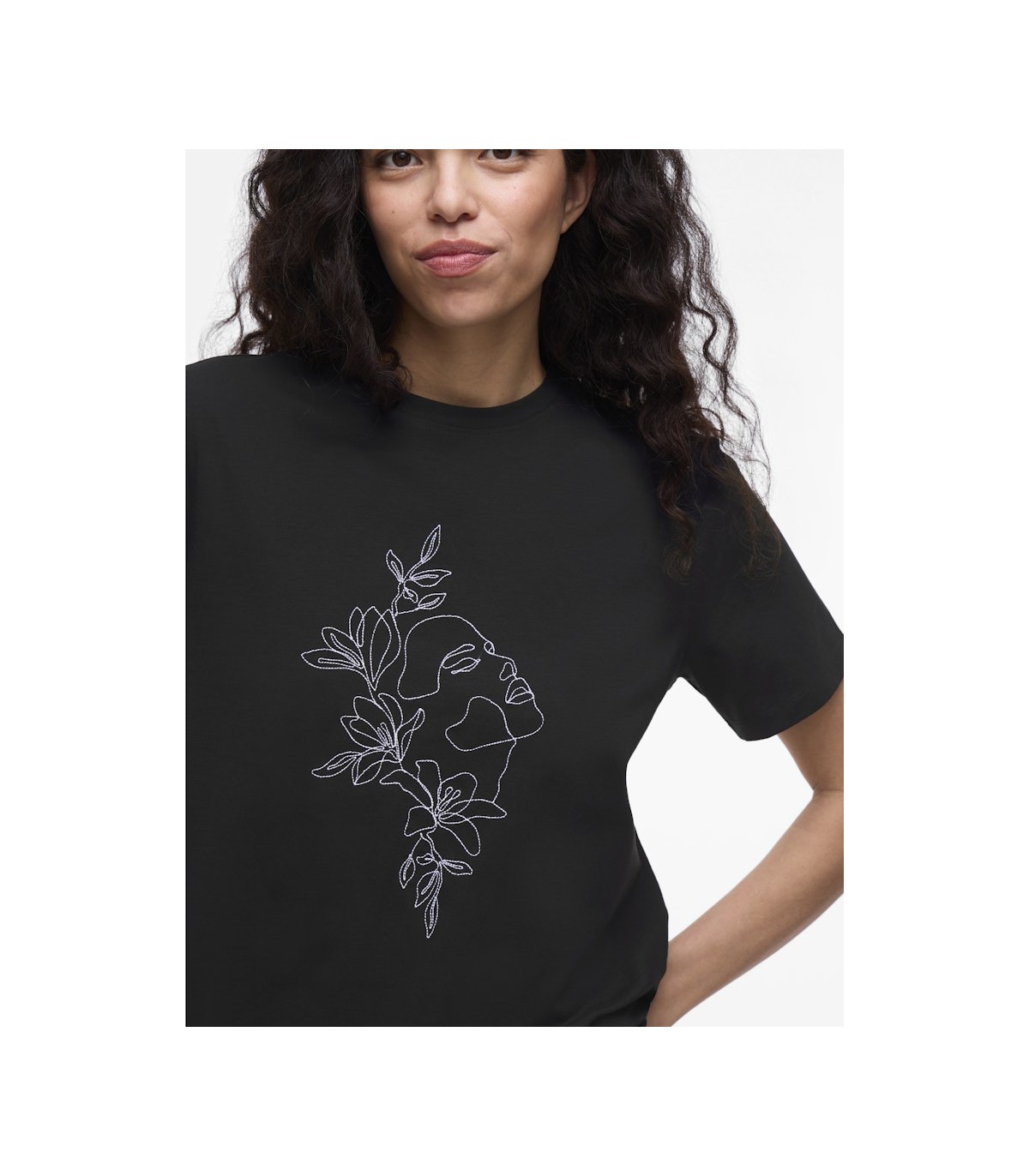 Minimalistinen naisten T-paita. Edessä on vaatimaton kirjoitus, joka lisää paitaan persoonallisuutta.