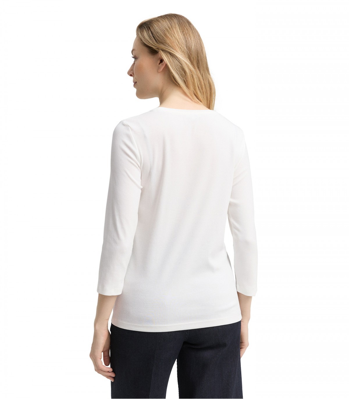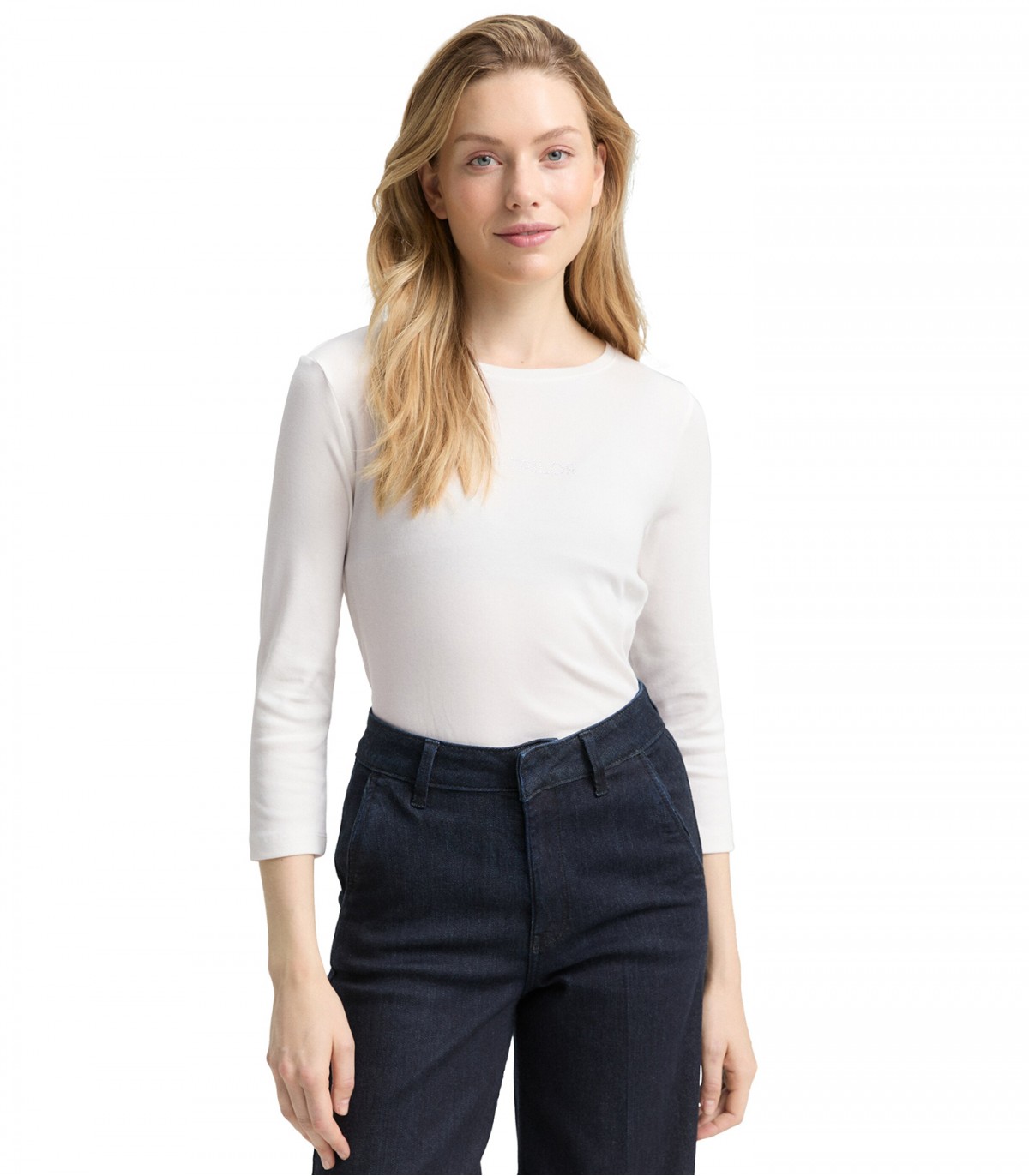 Yksinkertainen ja mukava suoramallinen paita, jossa on 3/4-pituiset hihat ja edessä pieni Tom Tailor -logo. Pehmeä ja joustava kangas istuu hyvin ja sopii käytettäväksi farkkujen päällä tai bleiserin alla.