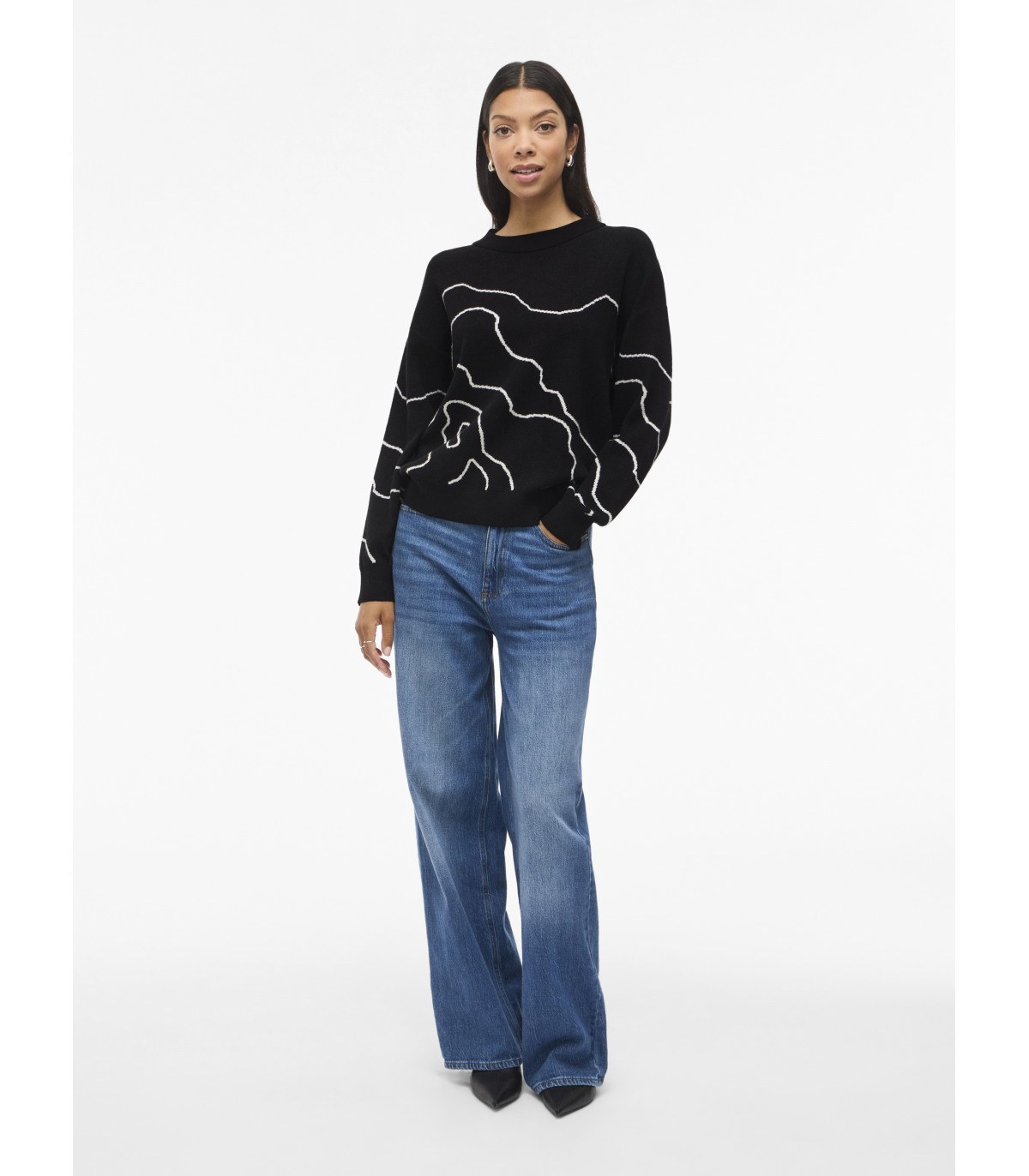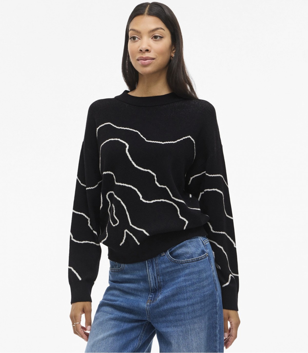Pehmeä ja mukava Vila naisten neulepusero. Rohkea ja moderni jacquard-kuvio sopii täydellisesti arkeen tai toimistolle.