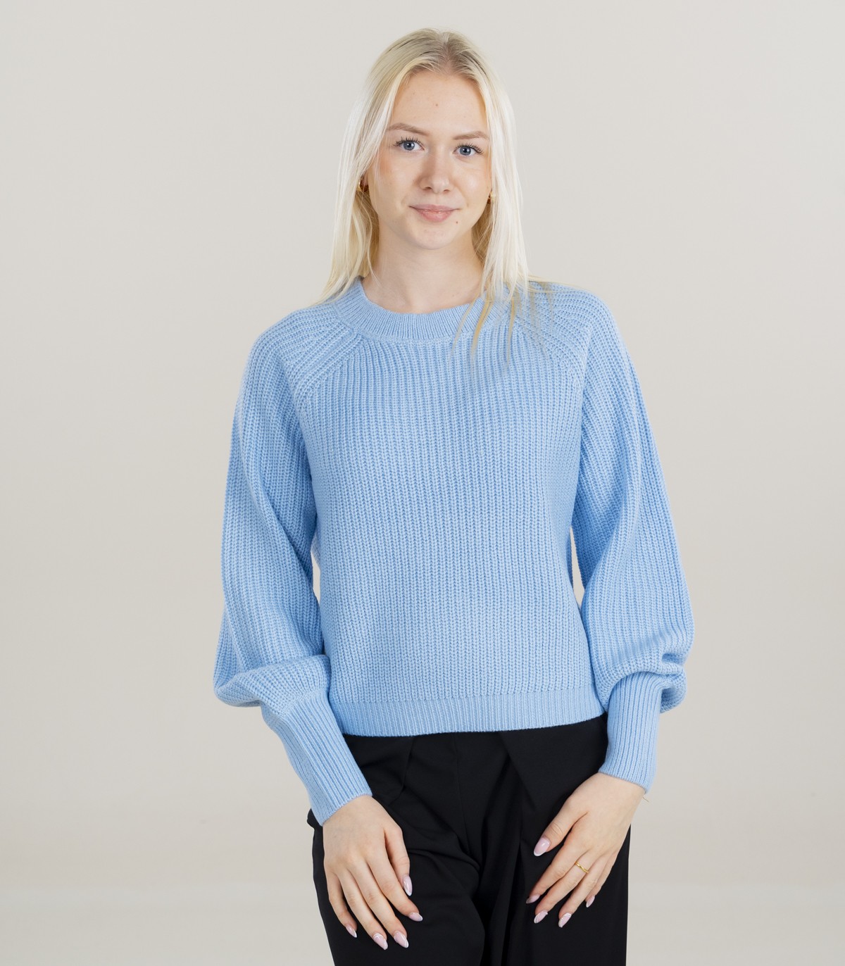 Ribattu neulepusero klassisella pyöreällä pääntiellä. Pehmeä ja mukava neulos sopii täydellisesti arkikäyttöön ja luo mukavan ja raikkaan ilmeen.