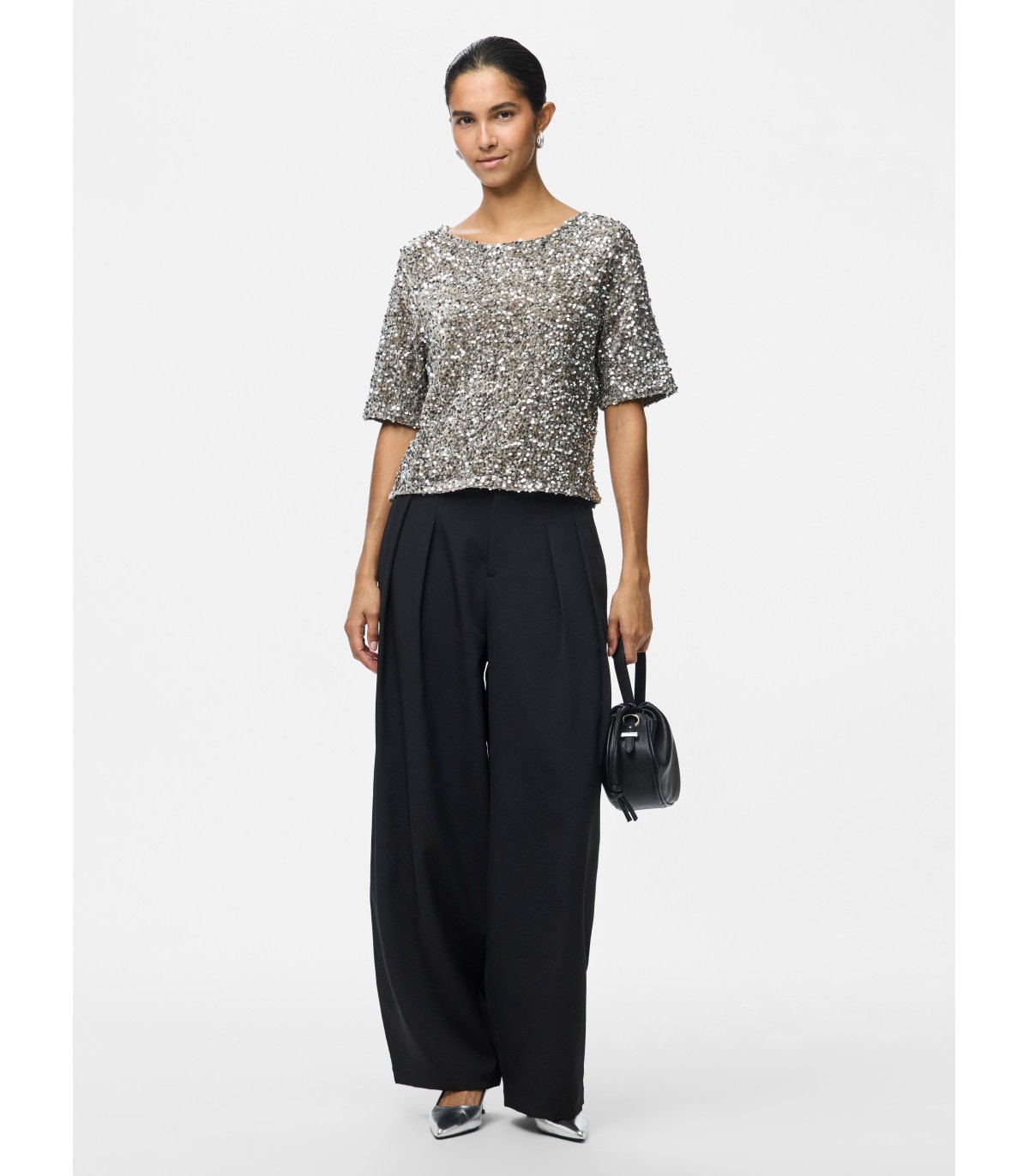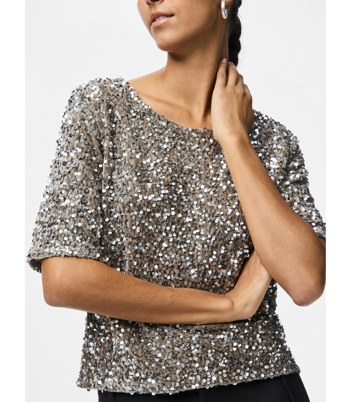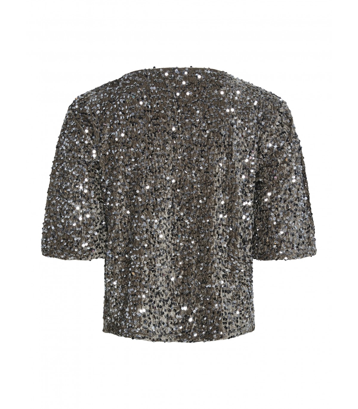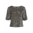 Kimaltava toppi on täydellinen, jos haluat lisätä asuisi juhlallisuutta ja kiiltoa. Malli lyhyillä hihoilla ja pyöreällä kaula-aukolla sopii sekä juhla- että vapaa-aikaan. Koko toppi on koristeltu paljeteilla, jotka antavat kirkkaan ja upean ilmeen.