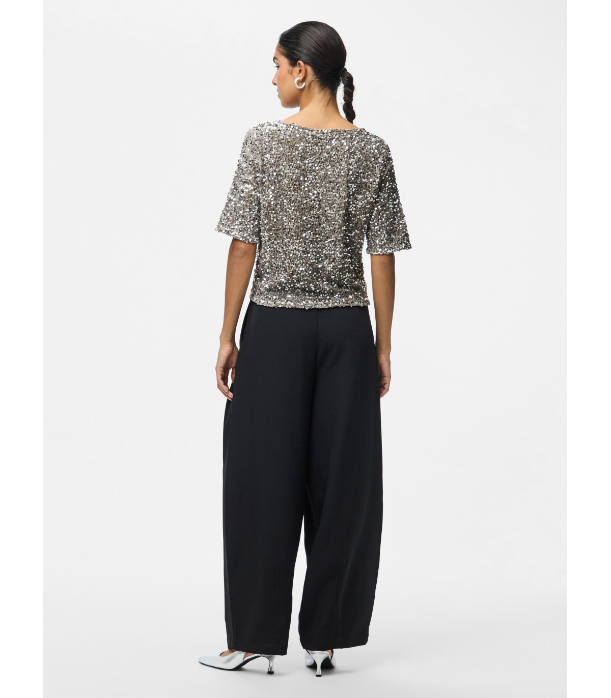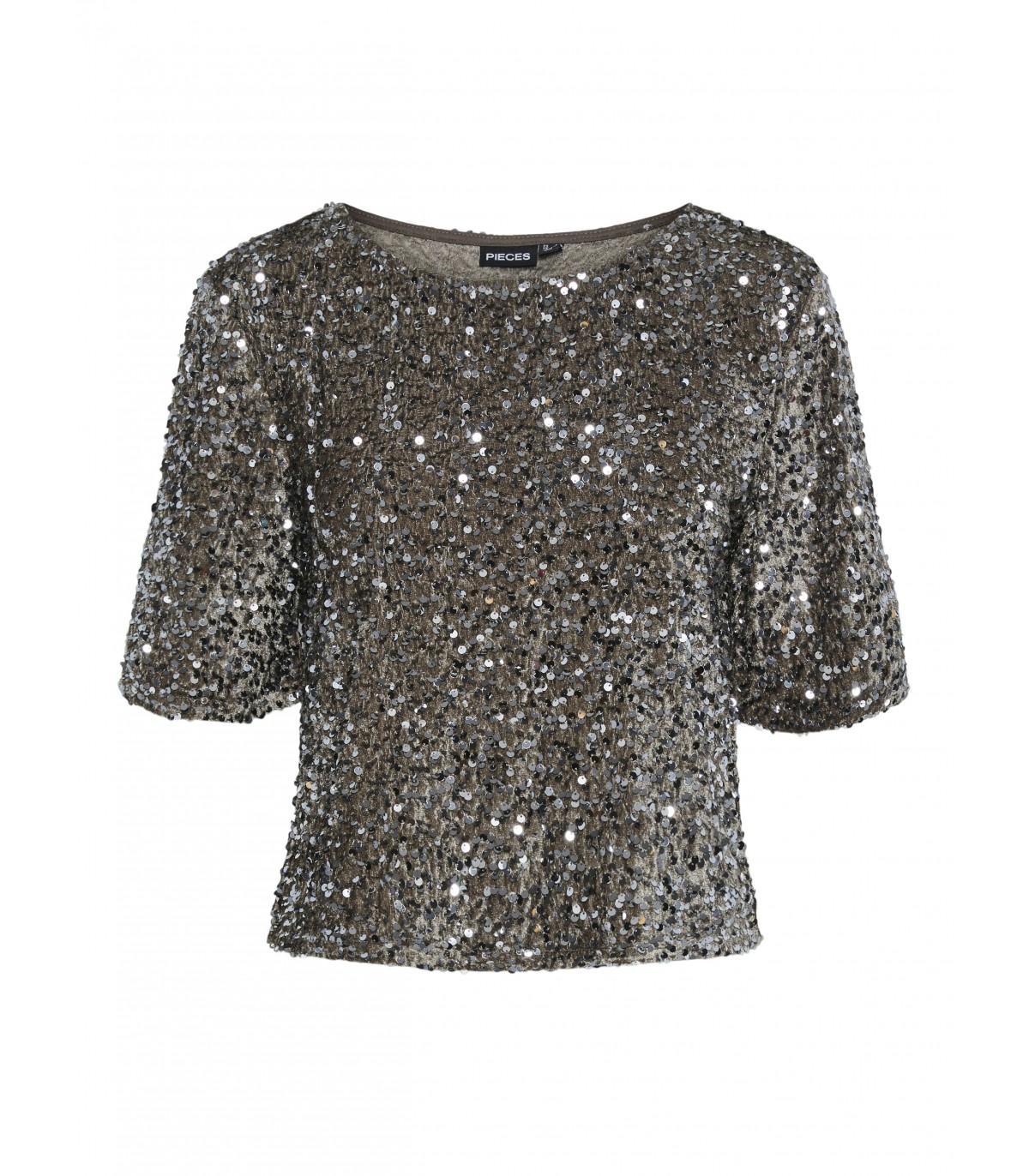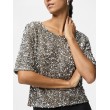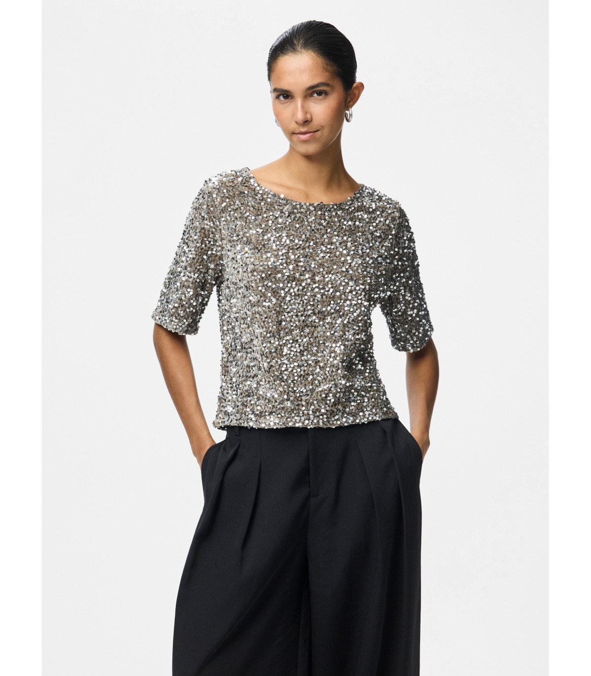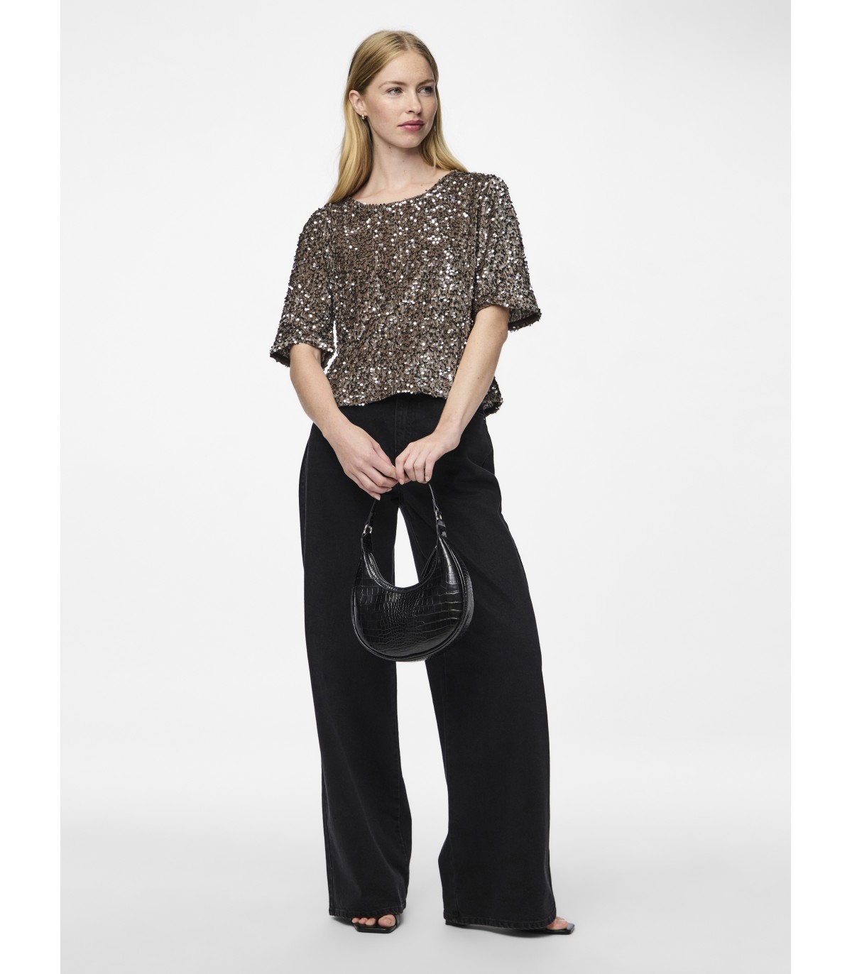 Kimaltava toppi on täydellinen, jos haluat lisätä asuisi juhlallisuutta ja kiiltoa. Malli lyhyillä hihoilla ja pyöreällä kaula-aukolla sopii sekä juhla- että vapaa-aikaan. Koko toppi on koristeltu paljeteilla, jotka antavat kirkkaan ja upean ilmeen.