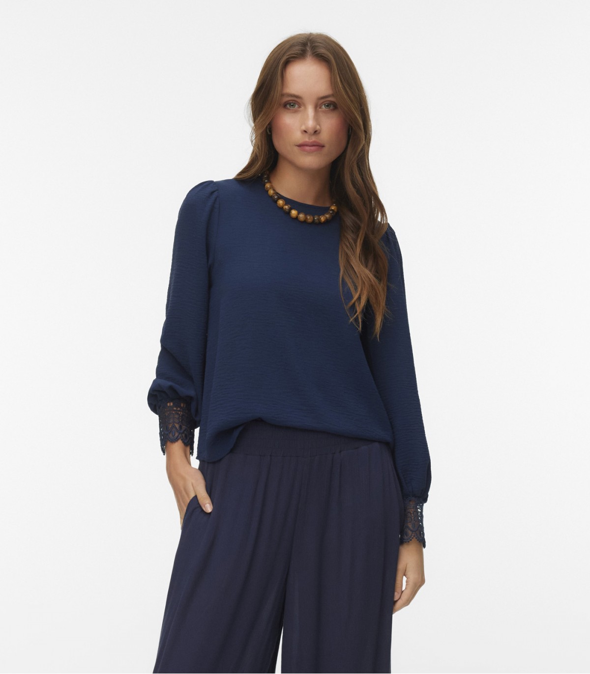 Vero Moda -naisten pusero on monipuolinen vaatekappale, joka sopii sekä arkeen että juhlavampiin tilaisuuksiin. Puhtaanvalkoinen sävy ja pitsikoristeet hihoissa luovat tasapainoisen ja harkitun kokonaisuuden.