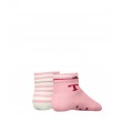 Söpöt ja käytännölliset vauvansukat, jotka pitävät jalat lämpiminä. Setti sisältää kaksi paria - toiset raidalliset ja toiset yksivärinen koristeellisella T-logolla.