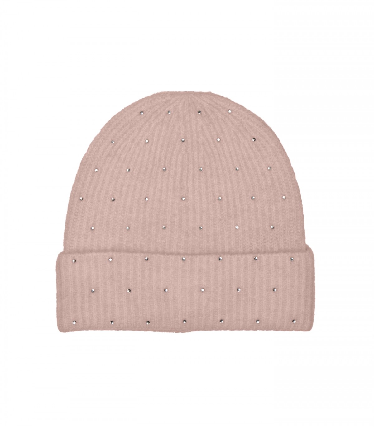 Klassinen neulottu pipo pienillä kimaltelevilla kivillä. Joustava ja pehmeä materiaali on mukava ja pitää pään lämpimänä ja suojassa kylmältä.