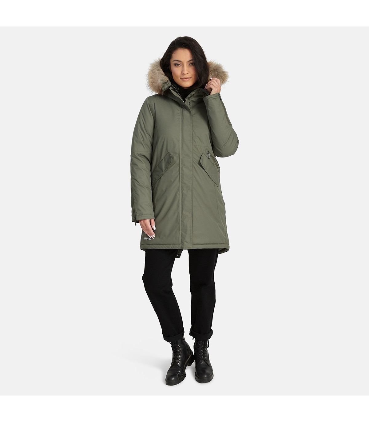 Elegantti ja käytännöllinen "Vivian 1" naisten talviparka on juuri sitä, mitä tarvitset kylmään talvisäähän. Tuulen- ja vedenpitävä ulkokangas pehmeällä turkisvuorilla varmistaa, että pysyt lämpimänä ja kuivana jopa ankarimmissa sääolosuhteissa. Irrotettava kaulus ja hihansuissa olevat resorit lisäävät mukavuutta ja toimivuutta.