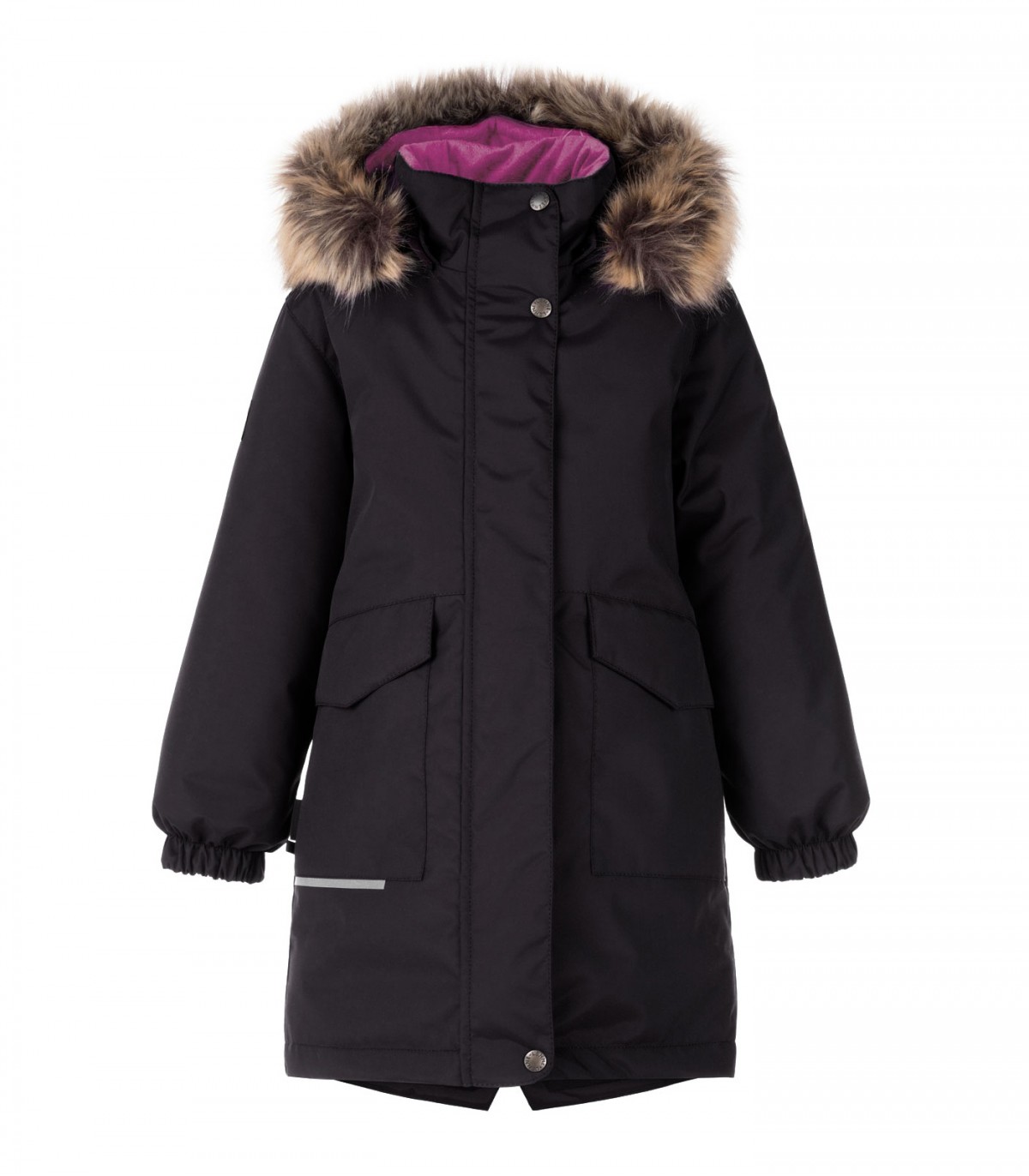 Käytännöllinen ja lämmin talviparka tytöille, jossa on pidempi malli. ActivePlus-kangas on säänkestävä, mukava, kestävä ja hengittävä. Parkassa on säädettävä vyötärö, jossa on stopperi, joka mukautuu kasvavan lapsen vartalon mukaan, sekä heijastavat yksityiskohdat turvallisuuden takaamiseksi. Irrotettava huppu on koristeltu tekoturkiksella ja kiinnitetään painonapeilla, jotka irtoavat helposti, jos ne jäävät kiinni.