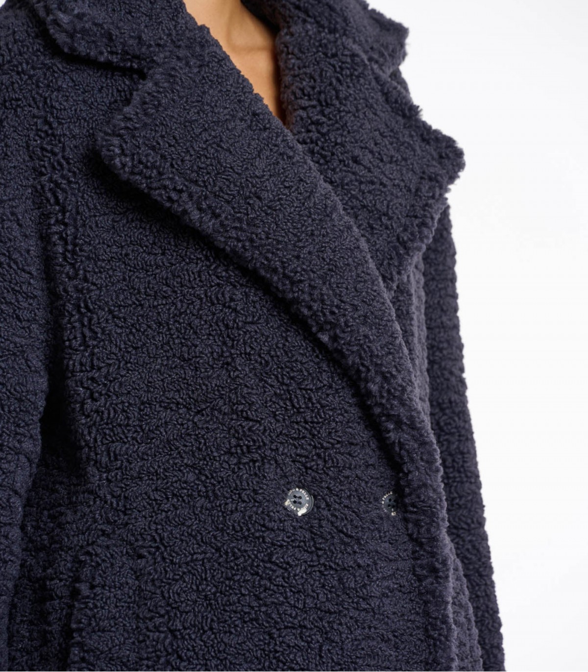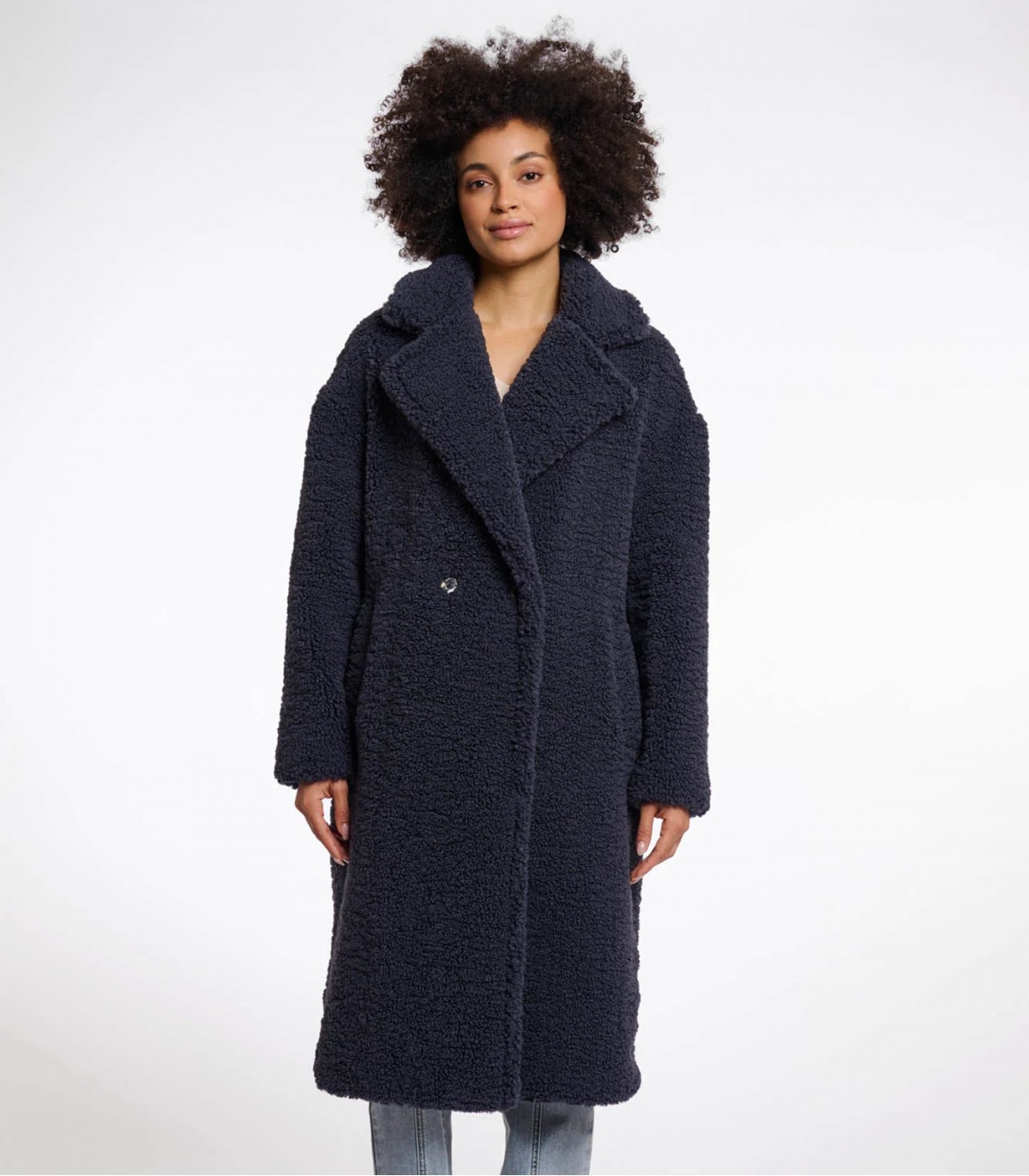 Tämä lämmin ja pehmeä teddytakki pitää sinut mukavan lämpimänä kylmempinä vuodenaikoina. Takissa on suora leikkaus, kaksirivinen napitus, kaulus ja käytännölliset sivutaskut.
