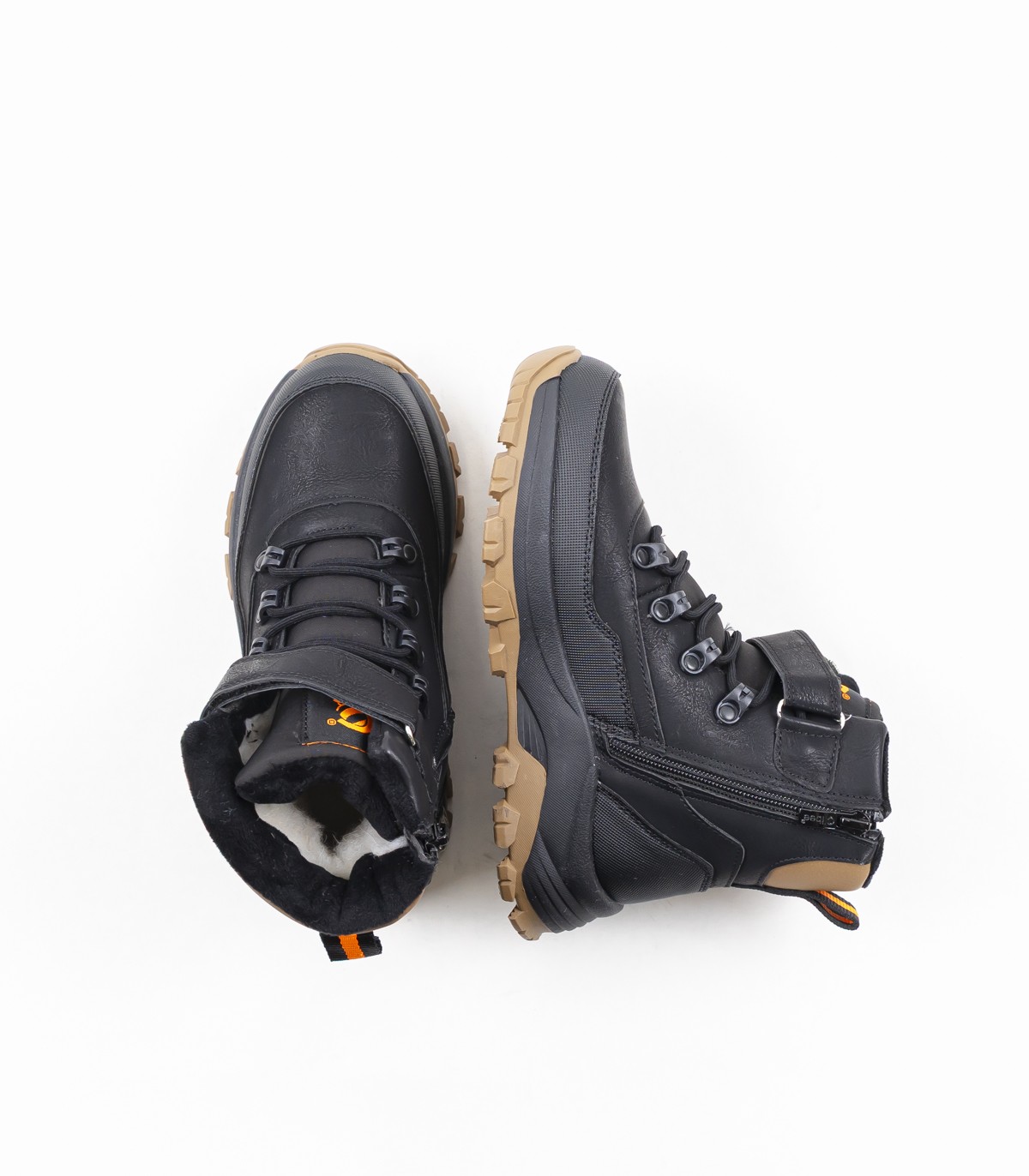Kestävät ja mukavat mustat talvikengät pojille. Turkisvuori pitää jalat lämpiminä ja vahva pohja pitää hyvin myös liukkailla pinnoilla.
