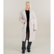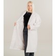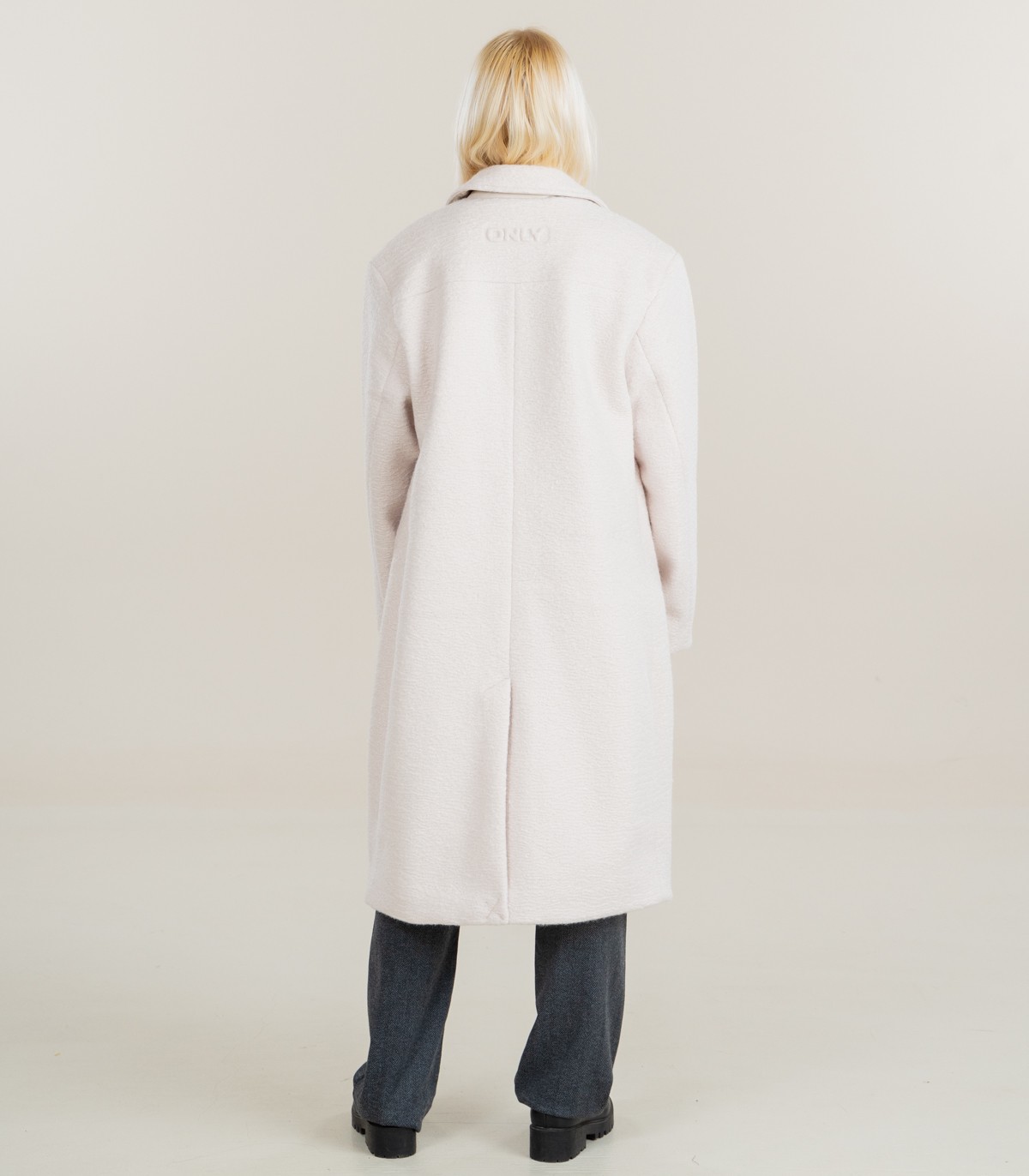 Klassikalise lõikega hele mantel sobib ideaalselt igapäevaseks kandmiseks. Mantel on sirge lõikega, ees kahe nööbiga kinnitus ja klapiga taskud.