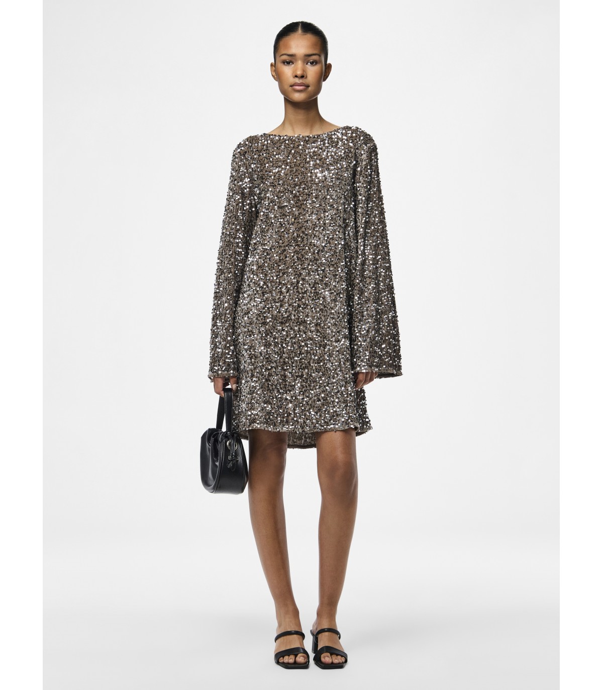 Litritega kaetud kleit sobib ideaalselt pidulikumaks sündmuseks. Mugav lõige ja kaunis lipsudetail seljal lisavad riietusele elegantsi ja unikaalsust.