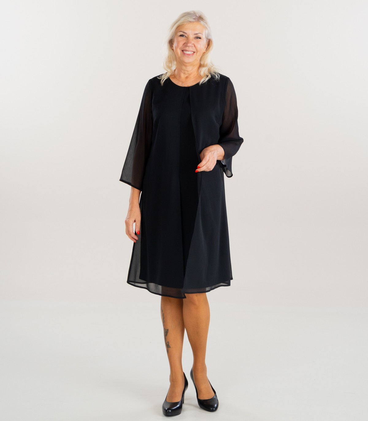 - Külgeõmmeldud šifoonist pealisjakk lisab kleidile kihilisust ja õhulisust