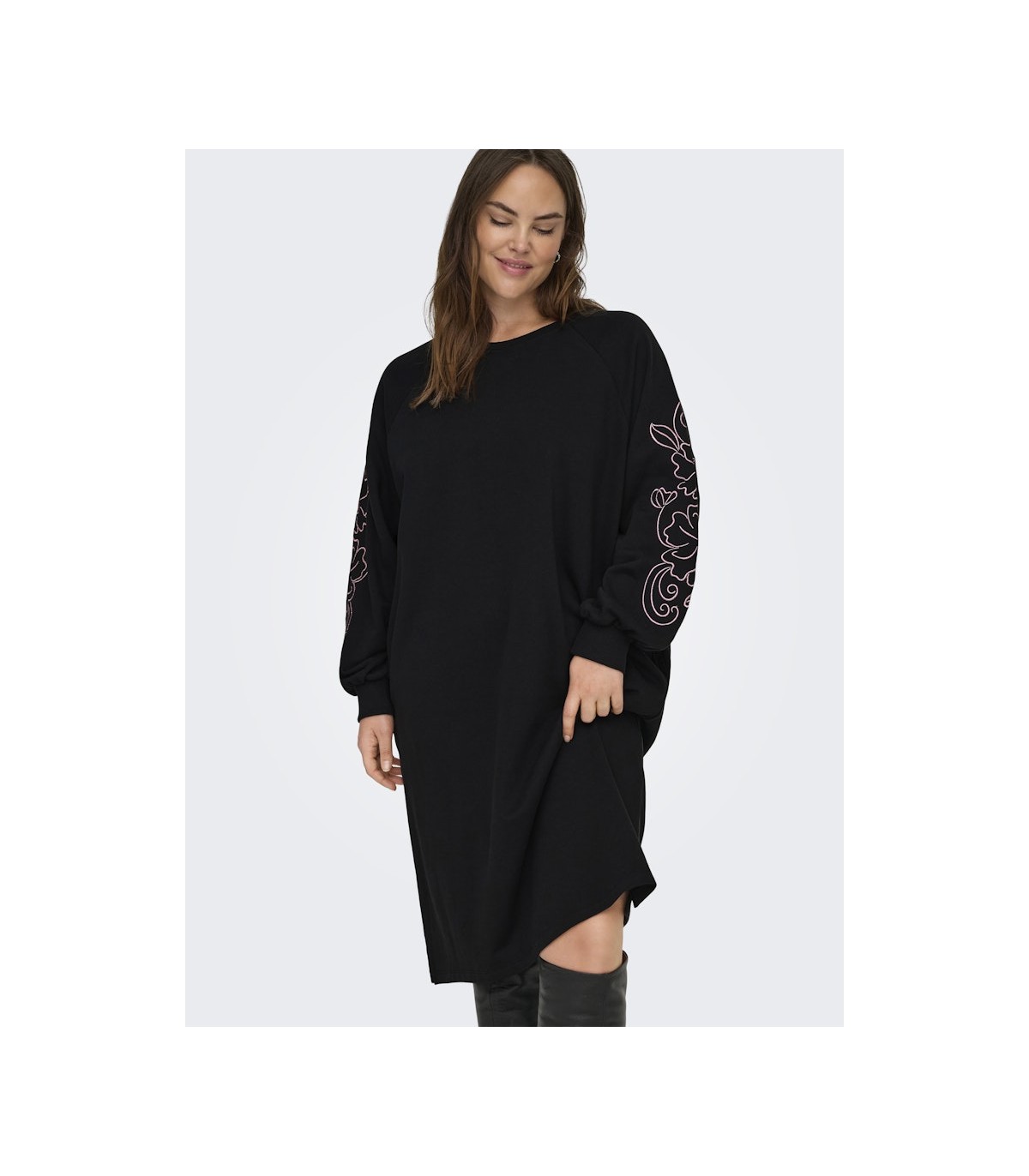 Mugav ja samas pilkupüüdev dresskleit sobib ideaalselt igapäevaseks kandmiseks. Kleidil on pikad varrukad, mida kaunistavad tikitud lillemotiivid. Sirge lõige ja pehme kangas on mugav kanda ning sobib erinevatele kehatüüpidele.