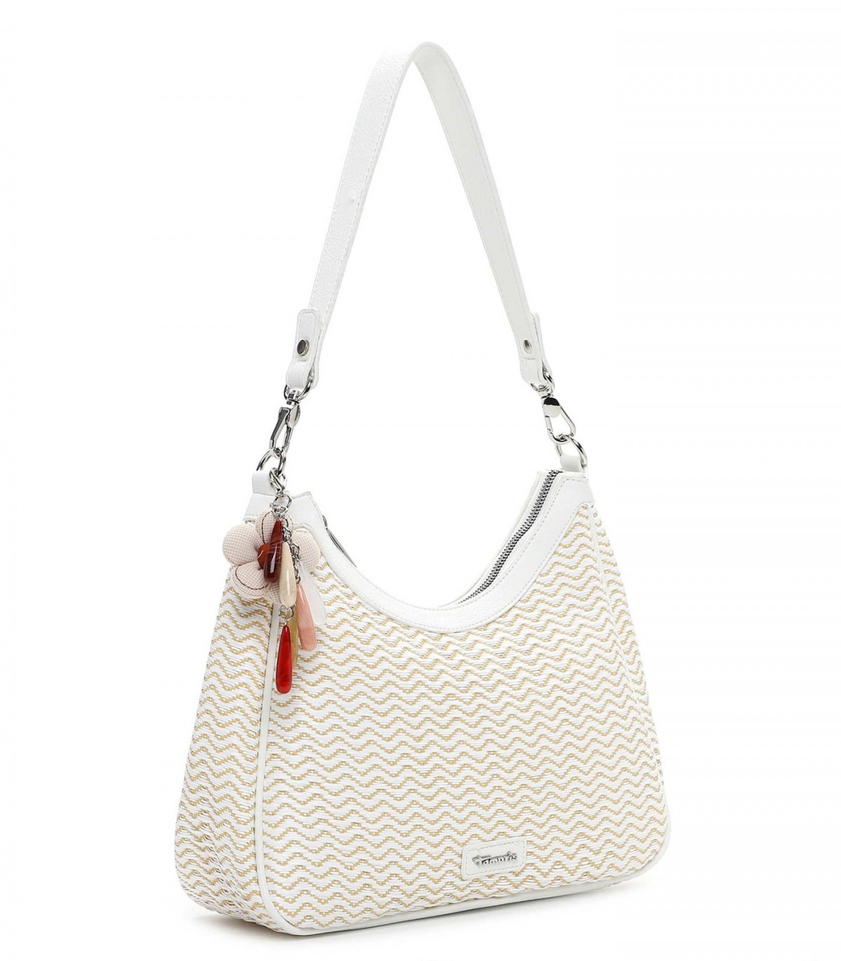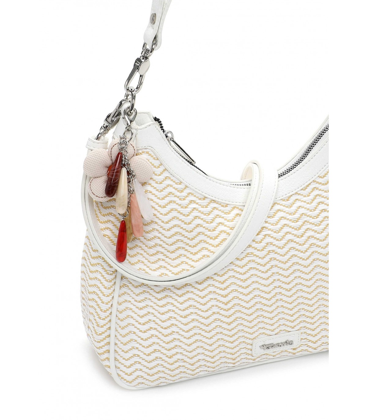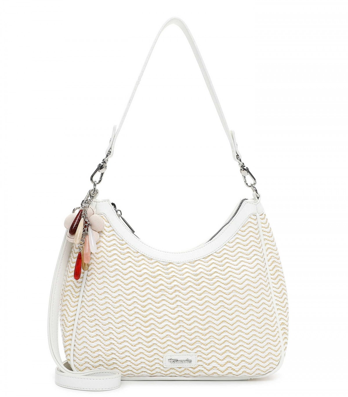 Tamaris naiste õlakott on kerge ja suvine. Mustriline pealispind ja heledad detailid loovad tasakaalustatud üldilme, mis sobib nii linna kui ka puhkusele.