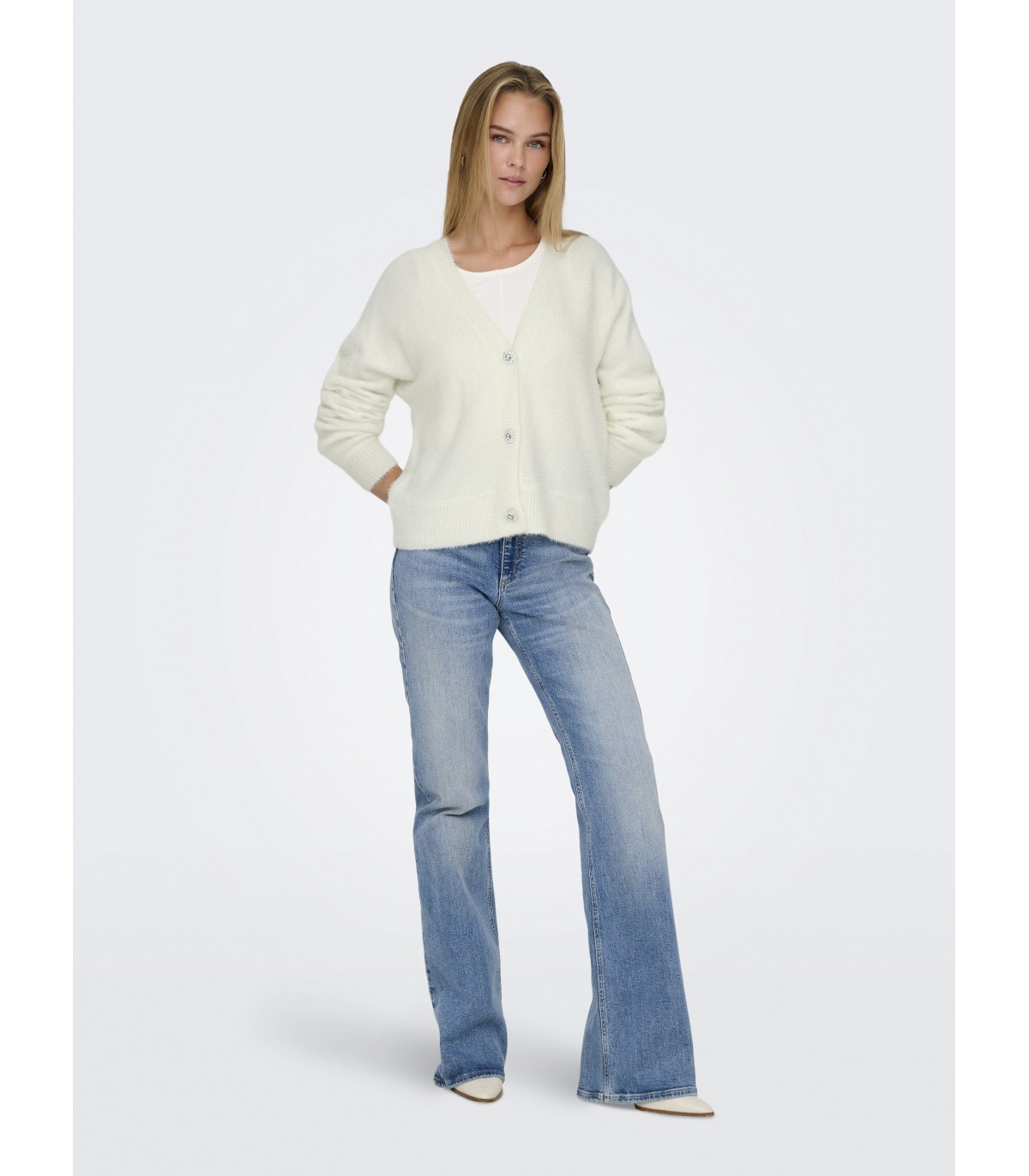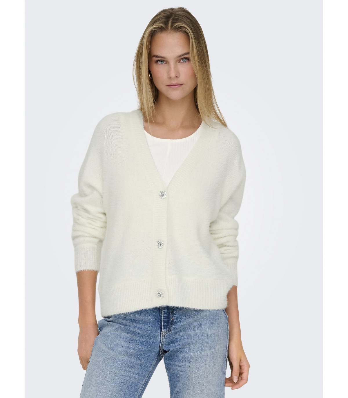 Mugav igapäevane Only naiste kardigan lihtsa lõikeha ja pehmest kangast. Klassikaline V-kaelus ja dekoratiivsed nööbid lisavad sellele naiselikku aktsenti.
