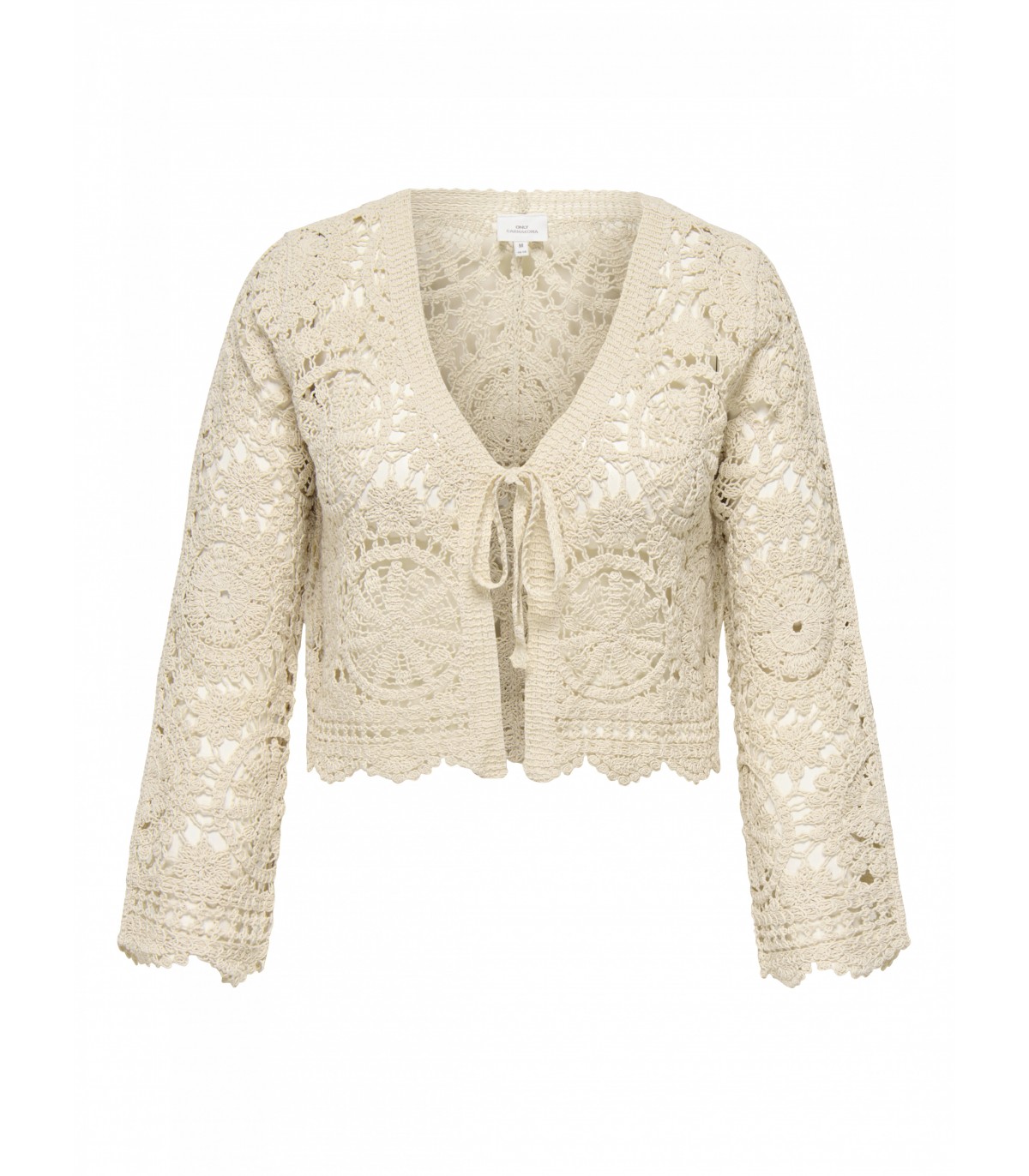 Kerge ja õhuline naiste kardigan heegeldatud mustriga.