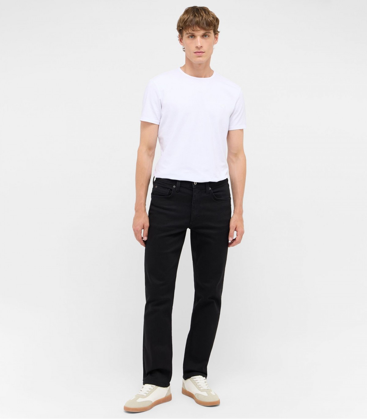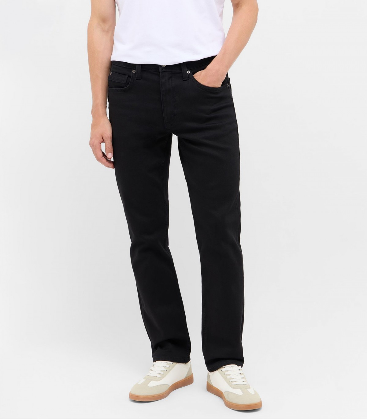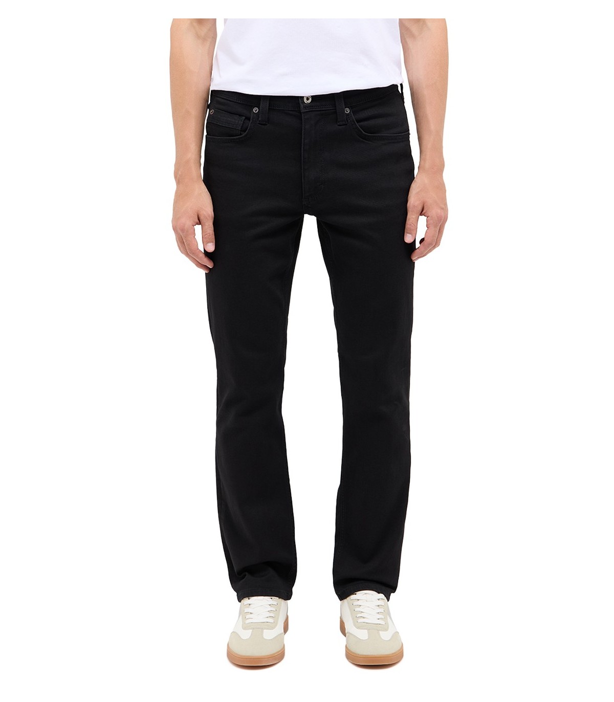 Klasikinio dizaino ir patogūs juodi „Mustang“ džinsai. Vašingtono stiliaus džinsai pasižymi vidutinio liemens ir tiesaus kirpimo, todėl tinka tiek laisvalaikiui, tiek oficialioms progoms. Tampri medvilnės mišinys užtikrina patogumą ir ilgaamžiškumą.