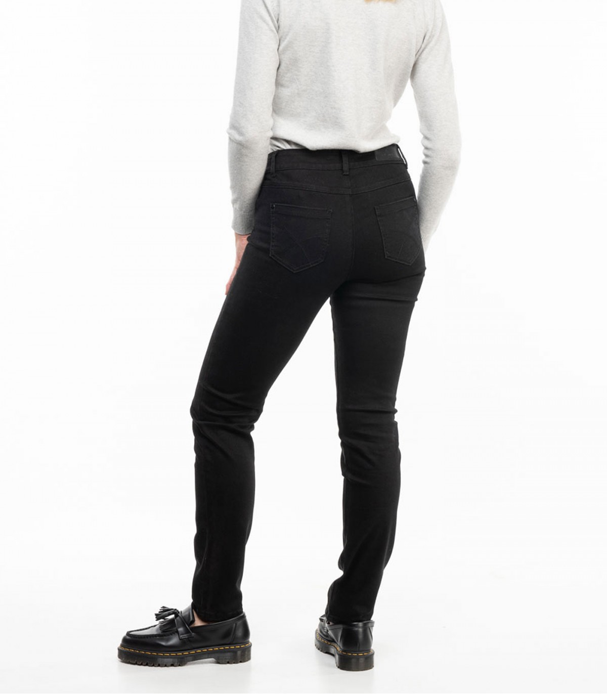 Tiesios kojos džinsai, pagaminti iš tampraus juodo džinsinio audinio, puikiai tinka kasdieniam dėvėjimui. Klasikinio dizaino su vidutinio aukščio juosmeniu patogiam prigludimui. Lengvai derinamas su įvairia apranga darbui, laisvalaikiui ir miesto gatvėms.