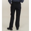 Šios klasikinės juodos moteriškos kelnės puikiai tinka tiek darbui, tiek kasdienai. Tamprus audinys užtikrina patogų prigludimą.