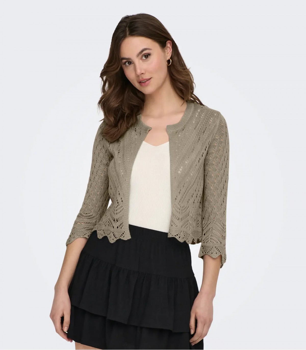 Stilingas trumpas JDY megztinis yra puikus pasirinkimas, jei norite savo išvaizdai suteikti elegancijos. Dėl nėrinių dizaino ir 3/4 rankovių tai yra universalus kūrinys, puikiai tinkantis tiek biure, tiek kasdieniam dėvėjimui.