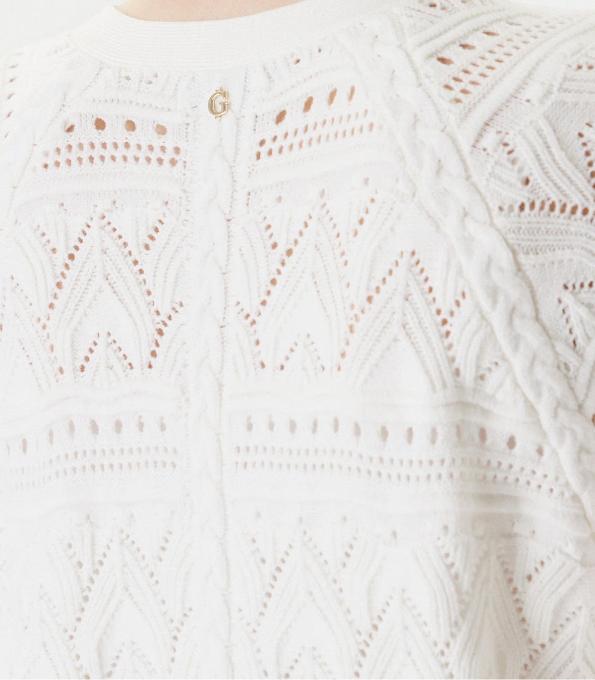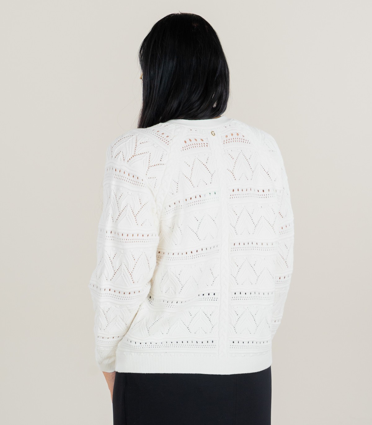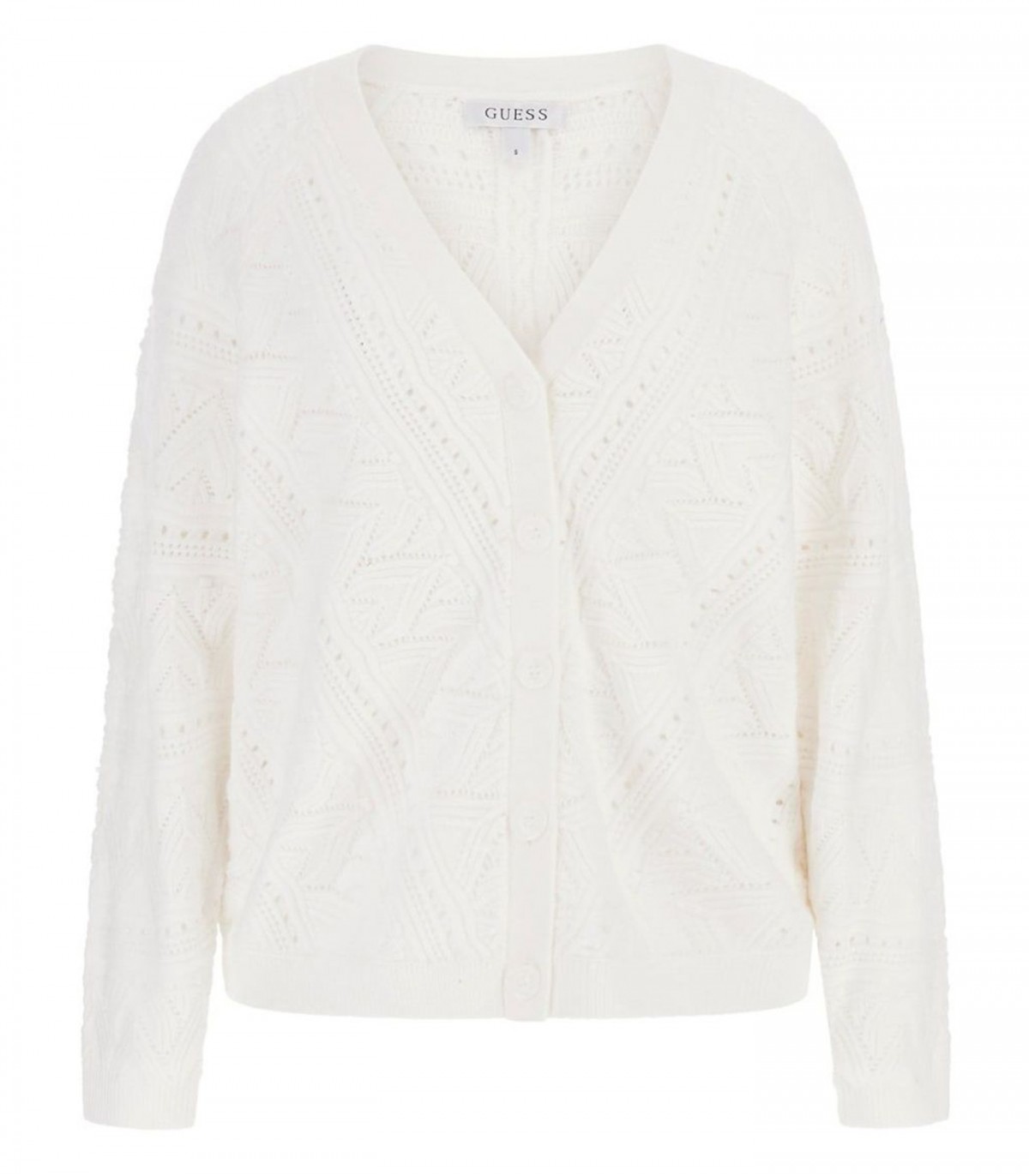 Moteriškas „Guess“ nėriniuotas kardiganas su sagomis. Jis derina modernų dizainą ir patogumą, todėl yra universalus pasirinkimas įvairiems įvaizdžiams.