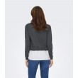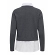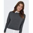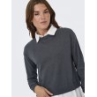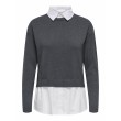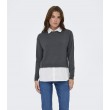 ONLY 2-in-1 moteriškas megztinis – tai originalus modelis, apjungiantis megzto megztinio patogumą ir klasikinį marškinių stilių. Viršutinė dalis pasiūta iš minkšto trikotažo su ilgomis rankovėmis ir briaunotais rankogaliais, o apačia ir apykaklė – iš audinio įdėklų, imituojančių klasikinius marškinius. Toks dizainas sukuria daugiasluoksnį efektą ir suteikia įvaizdžiui elegancijos.