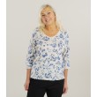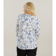 Šis moteriškas „Zabaione“ megztinis derina moteriškumą ir patogumą. Lengva medžiaga papuošta subtiliu mėlynu gėlių raštu, sukuriančiu gaivų ir romantišką įvaizdį. V formos iškirptė vizualiai pailgina siluetą ir paryškina iškirptę.