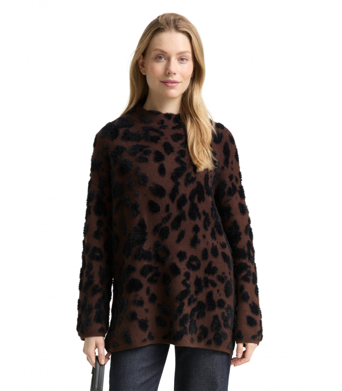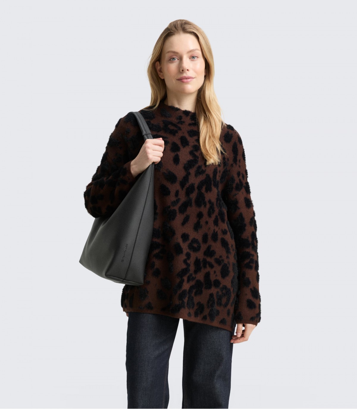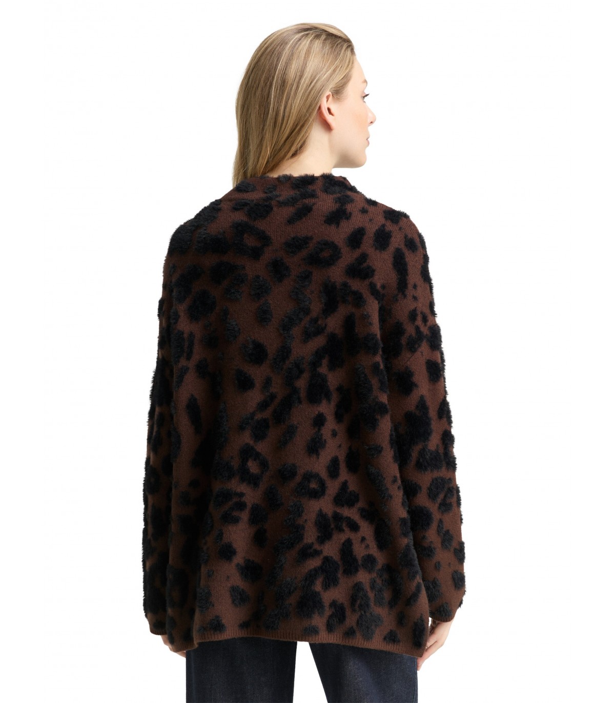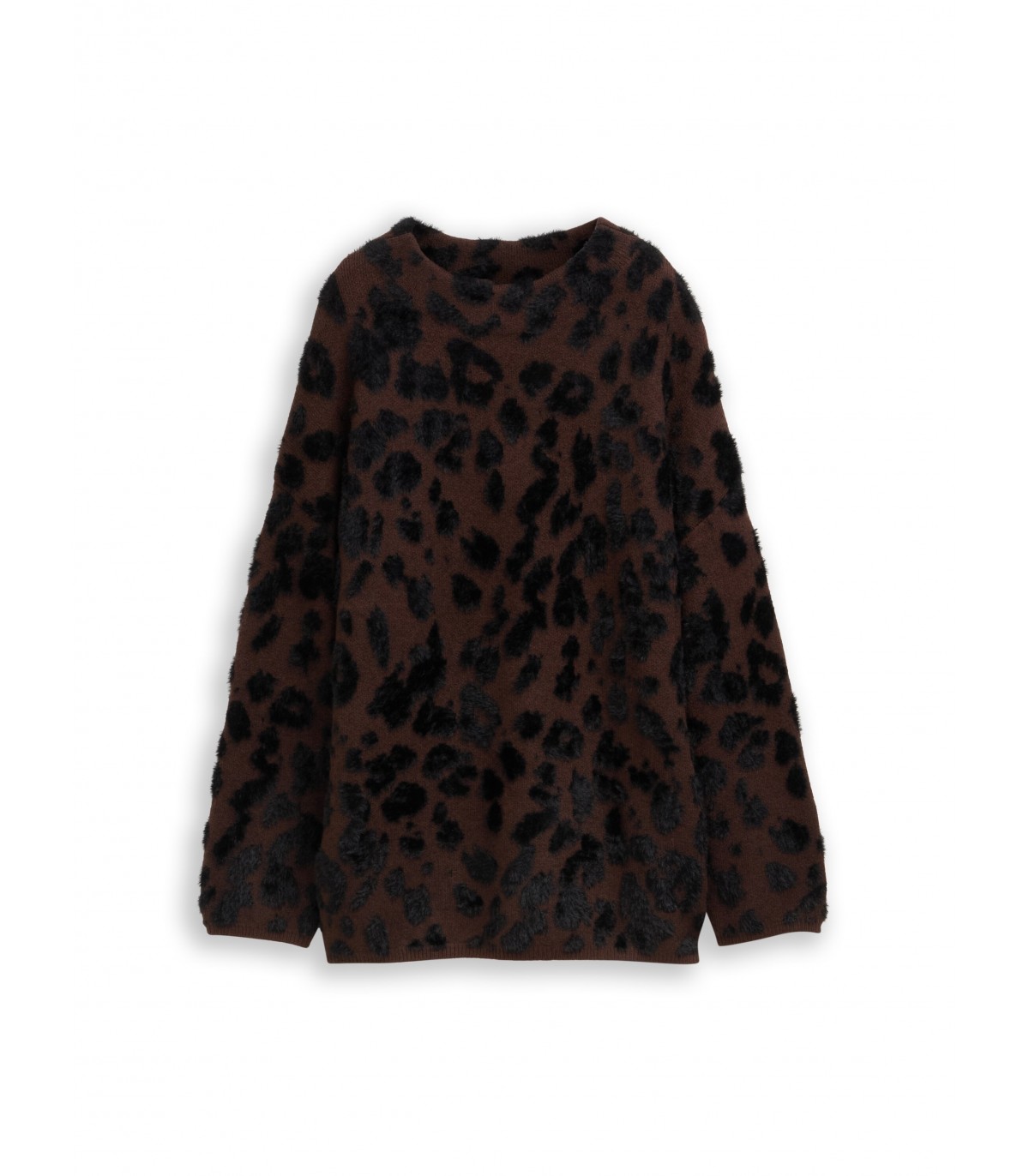 Šis minkštas, didelio dydžio megztinis su leopardo raštu. Dėl vilnos jis šiltas ir patogus, puikiai tinka vėsesnėms dienoms. Laisvas kirpimas užtikrina komfortą ir atsipalaidavusį, lengvą prigludimą.